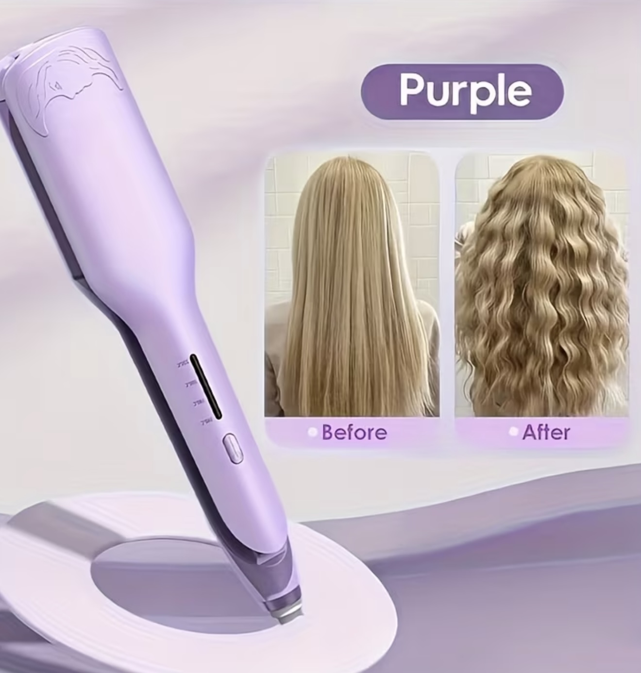 اتو مو موجدهنده و فرکننده (ویوکننده) با قابلیت کرامپر، ابزار فرکننده موجی عمیق با دو میله مخصوص بانوان، مناسب ایجاد موجهای پهن و موجهای عمیق، انتخابی عالی برای هدیه به خانمها، هدیه تولد و روز مادر، در رنگهای بنفش و صورتی