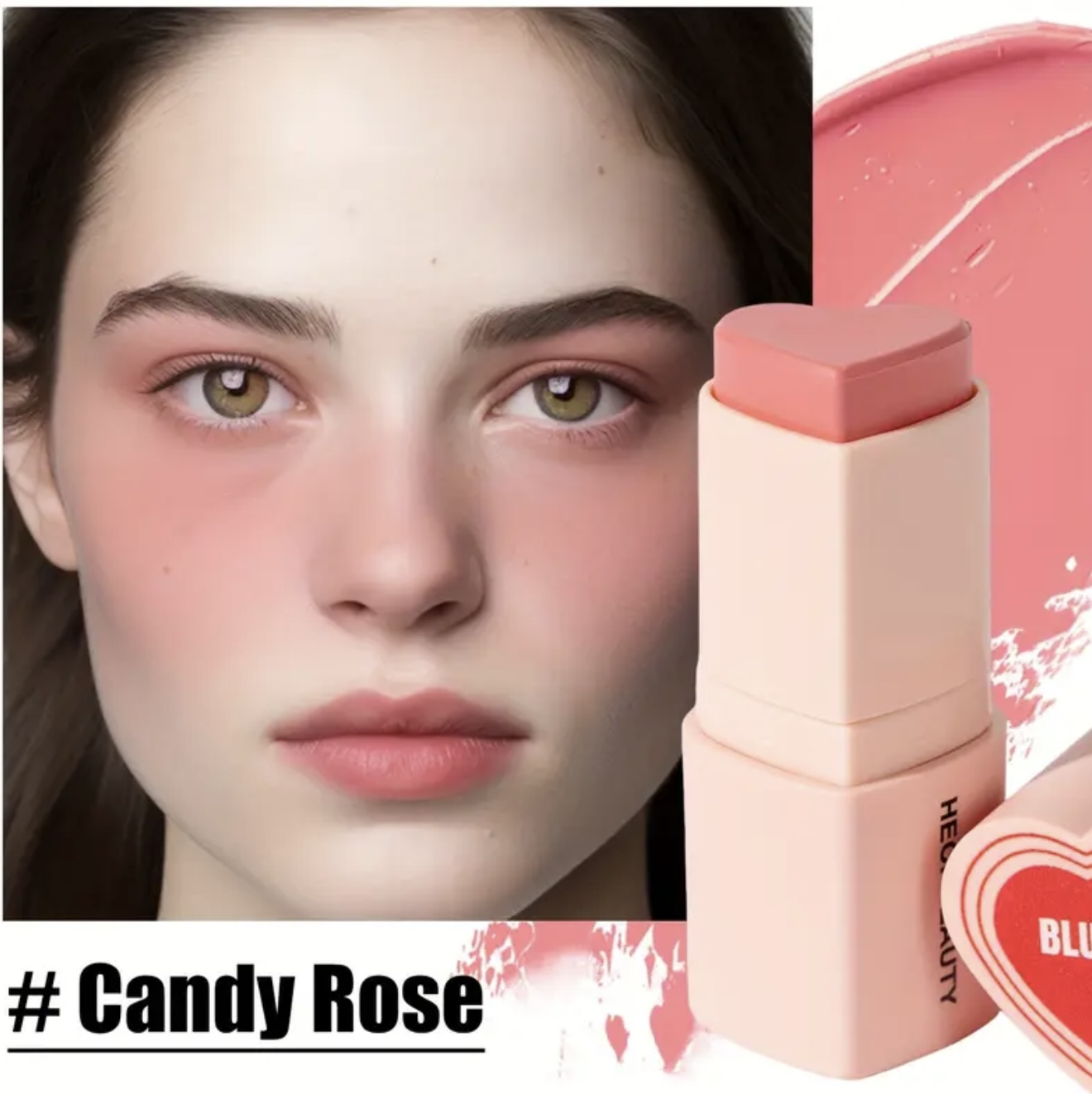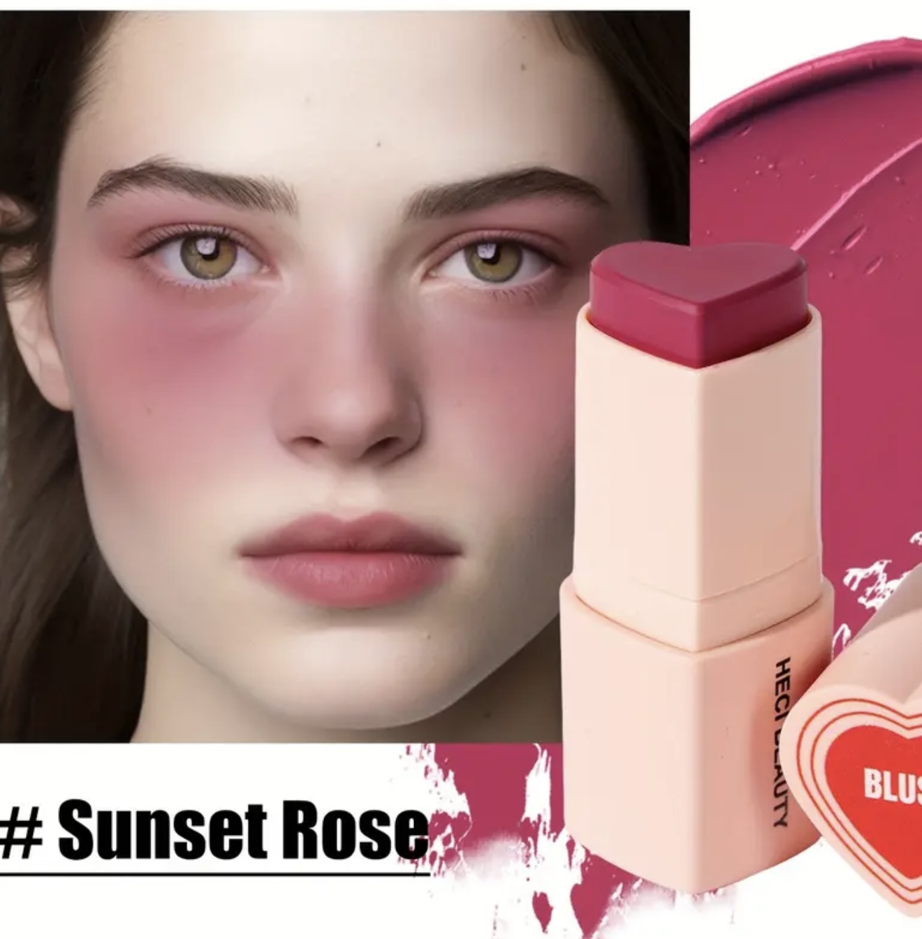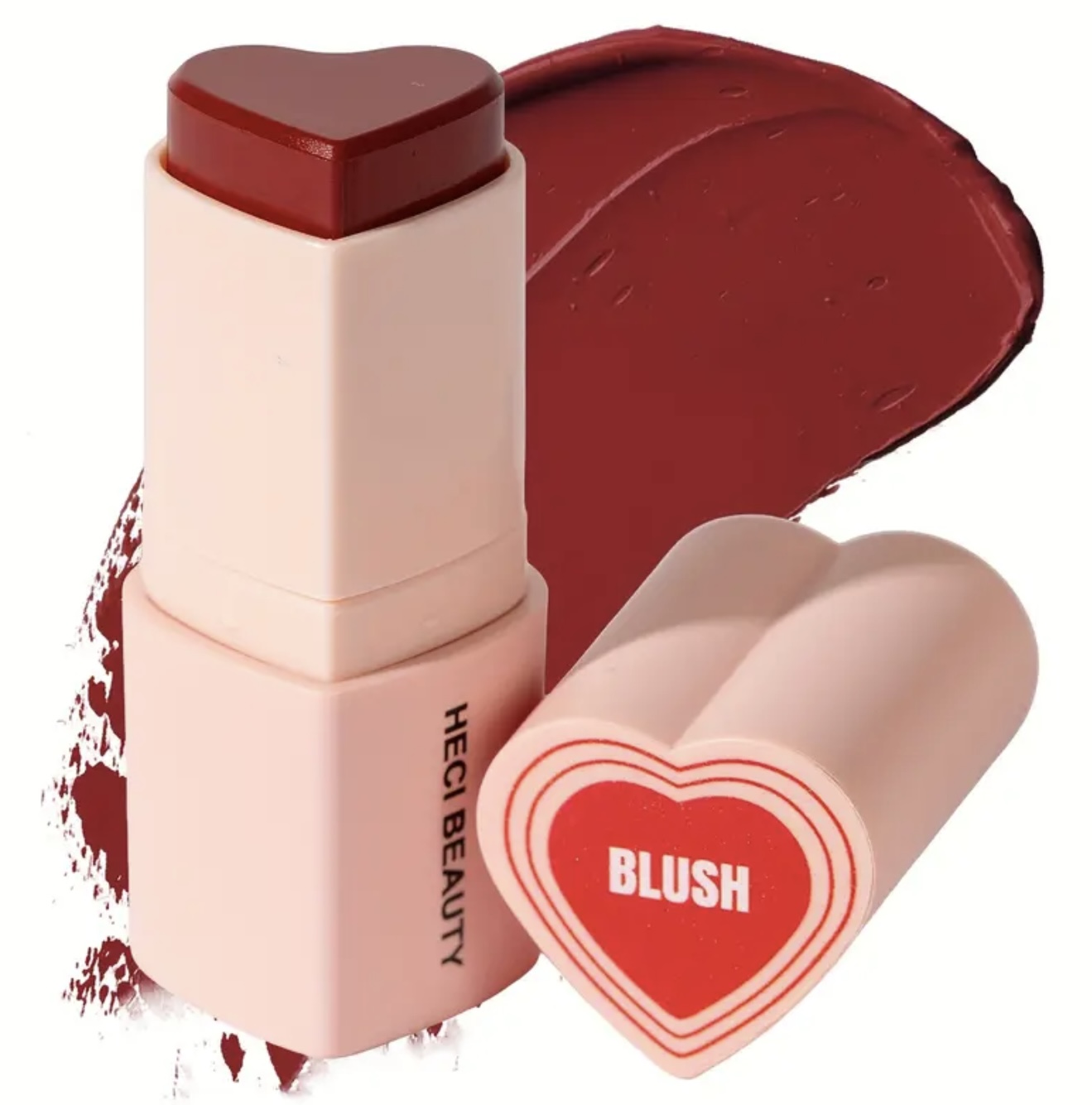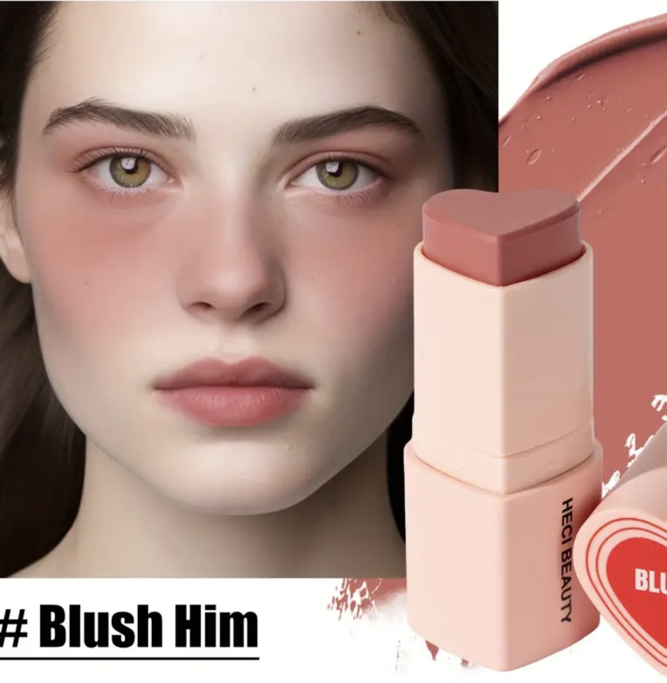 استیک رژگونه قلبی شکل ۳ در ۱ HECI– چندکاره با پوشش مات طبیعی، ماندگار و مرطوبکننده، با رنگدهی بالا، مناسب آرایش نود و روشنکننده، برای آرایش روزانه و جشنها، کرم بژ روشن