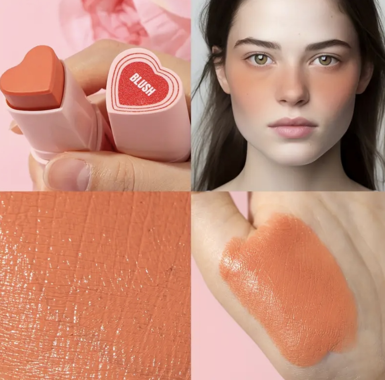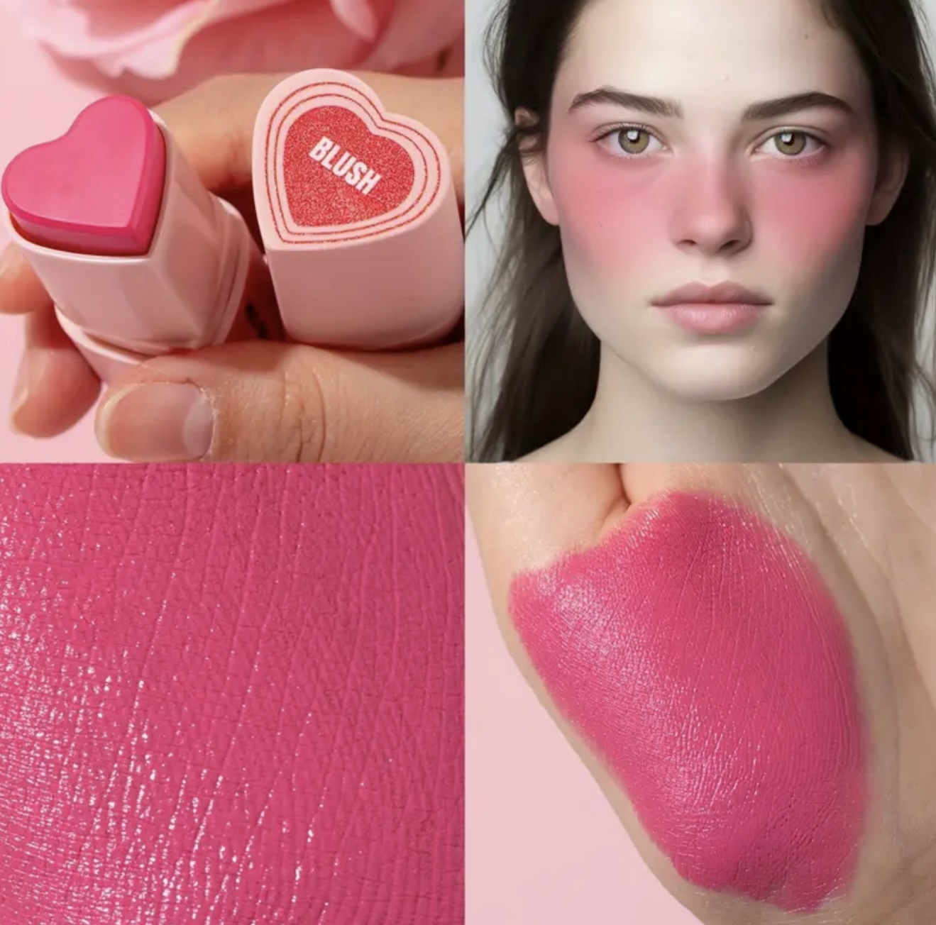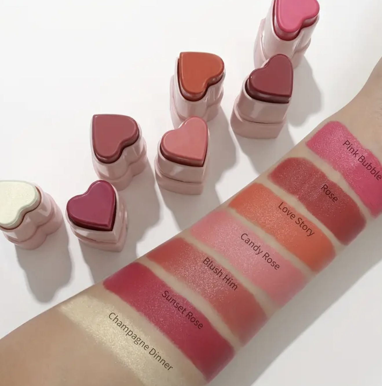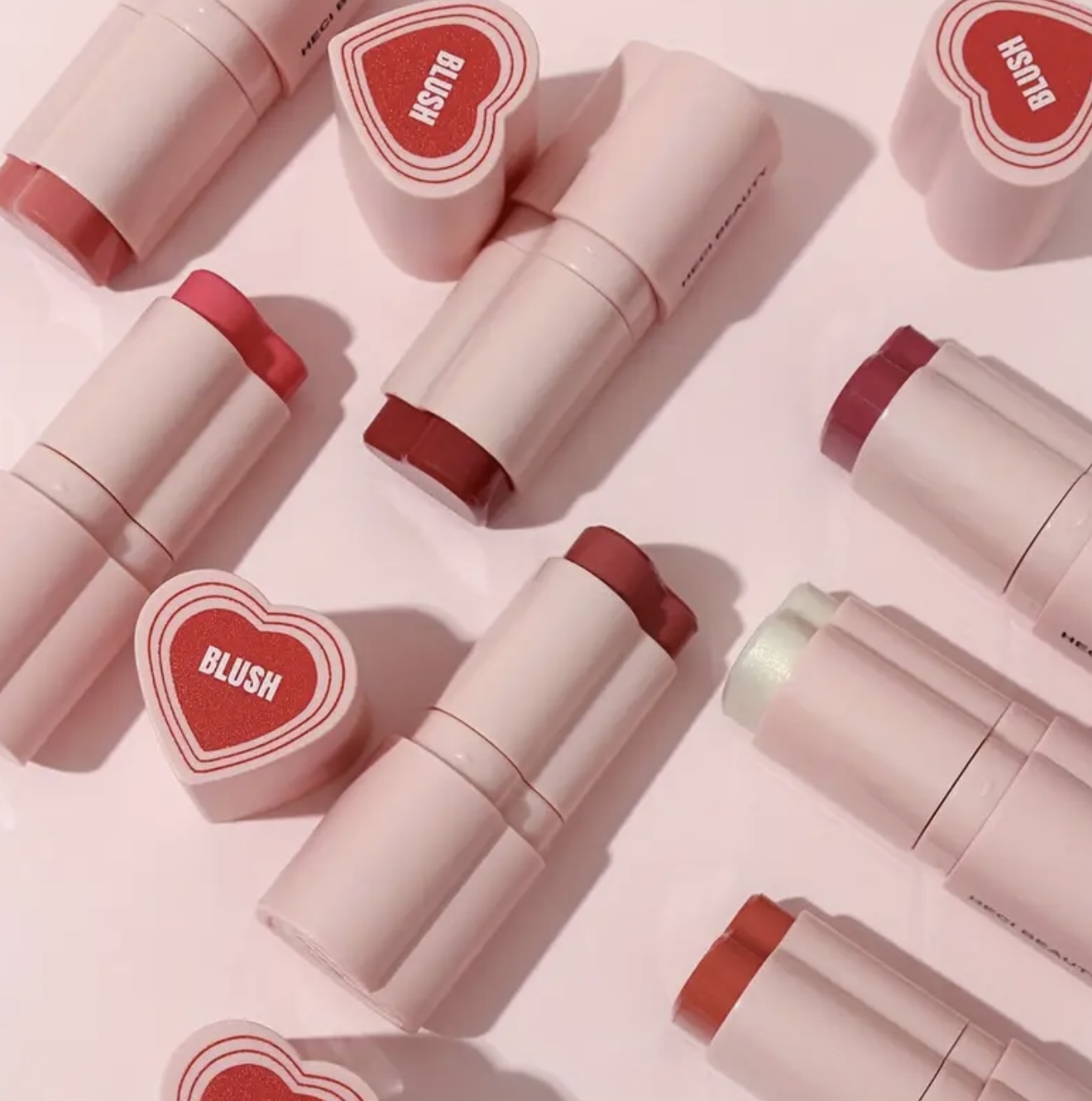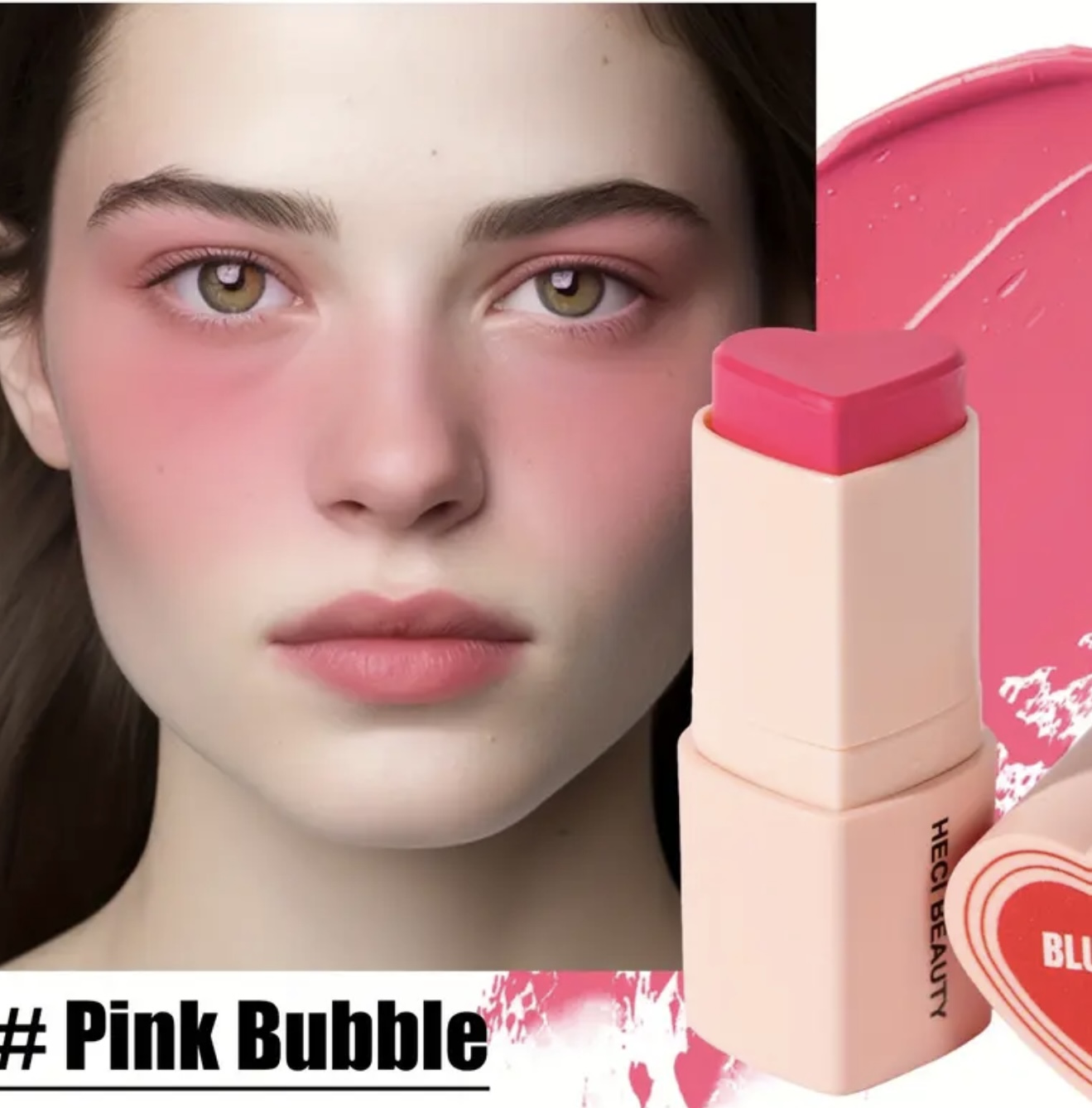 استیک رژگونه قلبی شکل ۳ در ۱ HECI– چندکاره با پوشش مات طبیعی، ماندگار و مرطوبکننده، با رنگدهی بالا، مناسب آرایش نود و روشنکننده، برای آرایش روزانه و جشنها، کرم بژ روشن
