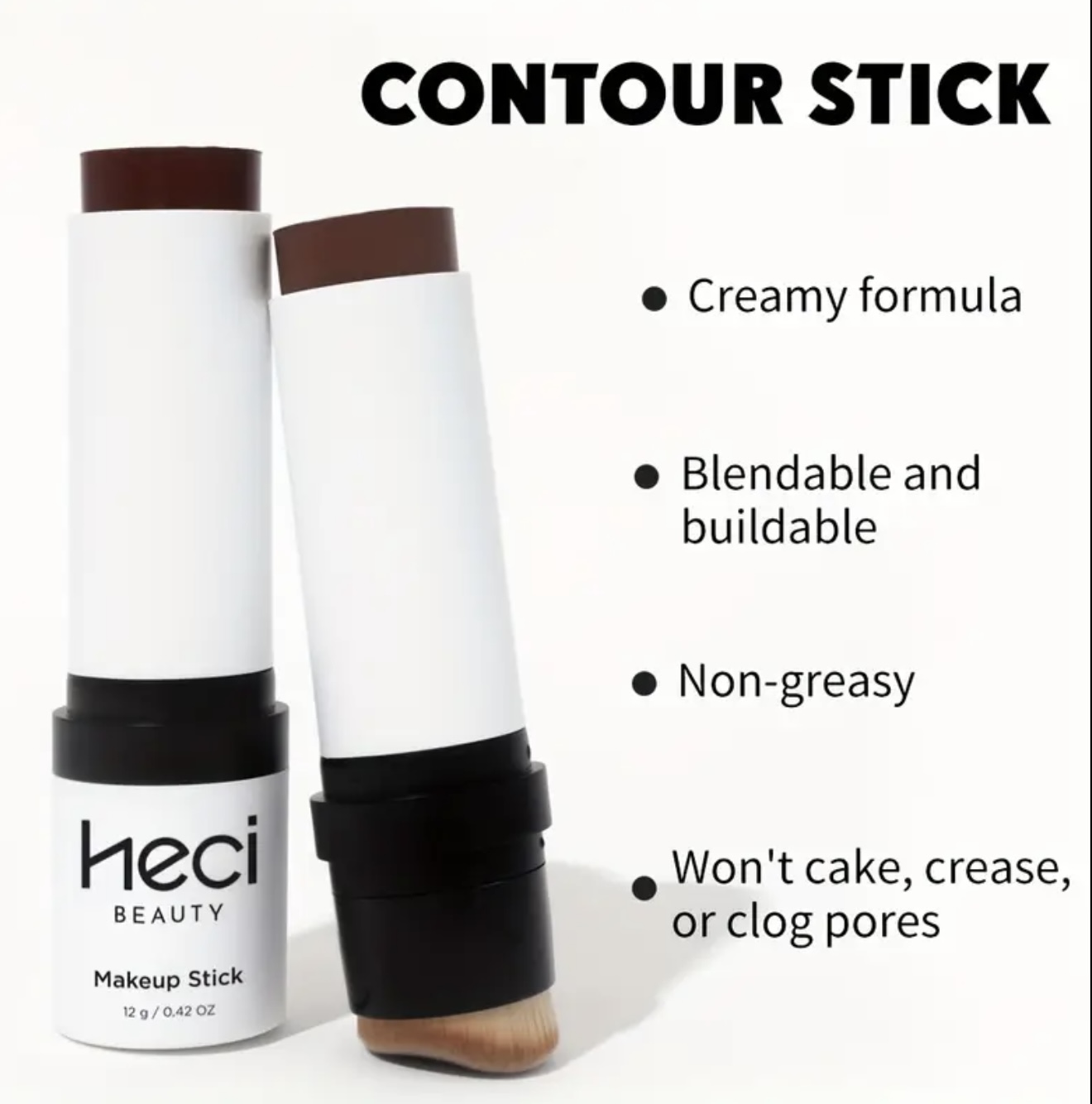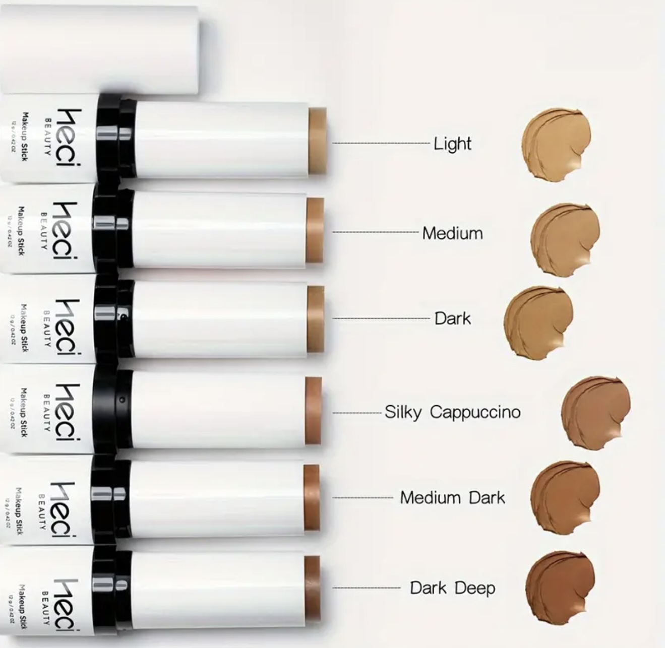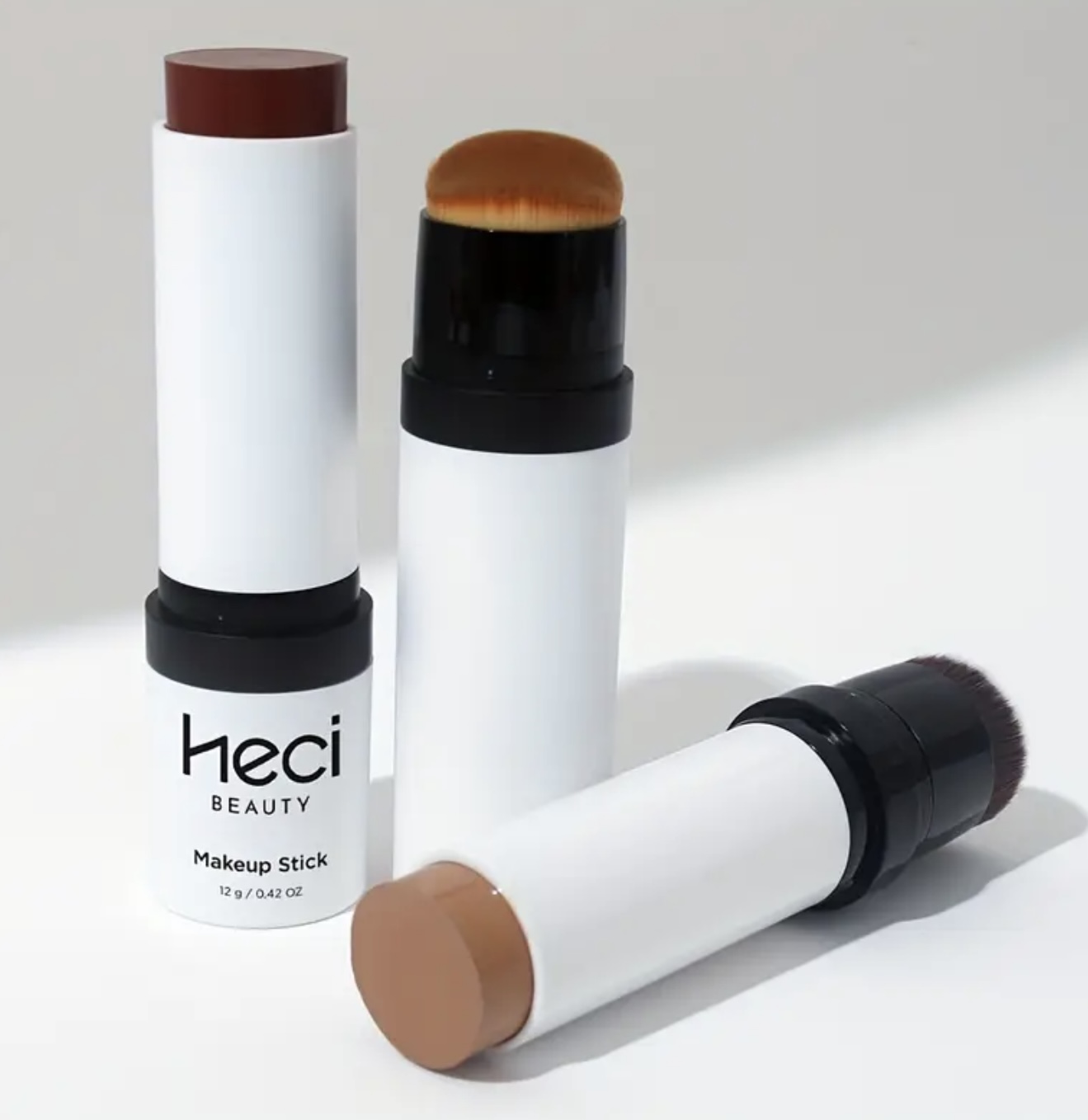 استیک کانتور و کانسیلر ضدآب HECI BEAUTY – کرمپودر مات نرم با پوشش کامل، قابللایهسازی تا تناژهای تیره (قهوهای/بژ/نود/شامپاینی)، فرمول کرمی با جلوه پودری، مناسب برجستهسازی استخوان گونه، خط فک، ابرو و پوششدهی نواقص