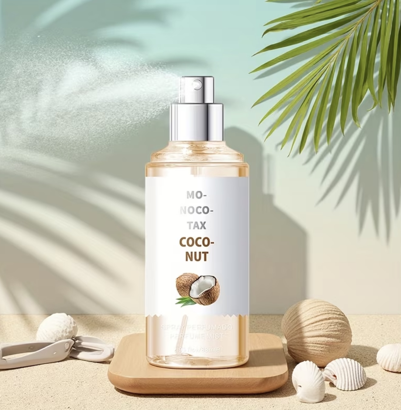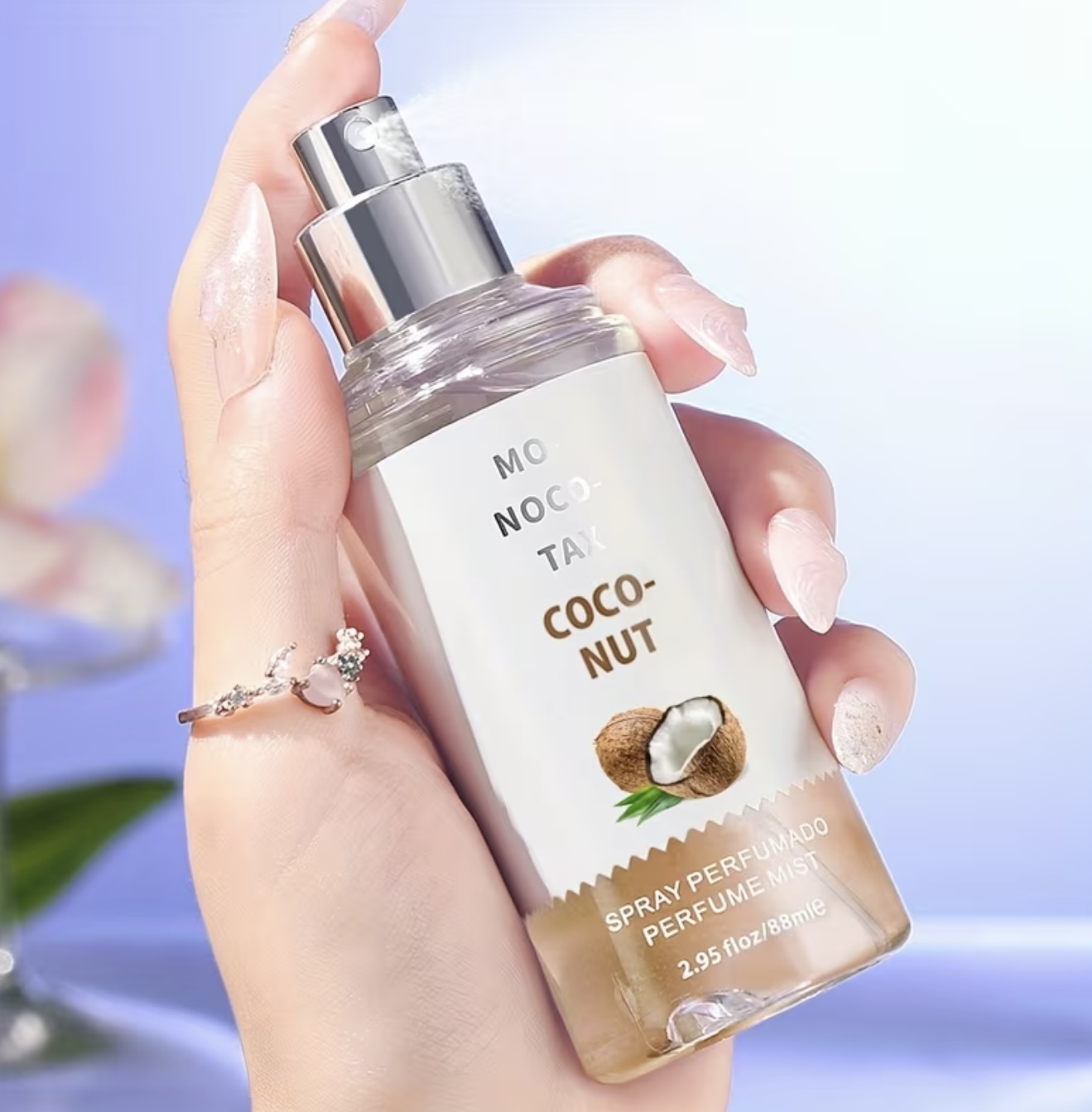 اسپری عطر زنانه با ماندگاری طولانی با رایحه نارگیل – رایحه استوایی نارگیل، در بطری شیک و مینیمالیستی، مناسب استفاده روزانه و مناسبتهای ویژه، عطر قابل حمل برای سفر، هدیهای ایدهآل برای تولد، سالگرد و قرارهای عاشقانه، طراحی بطری شیک، رایحهای با کیفیت پریمیوم
