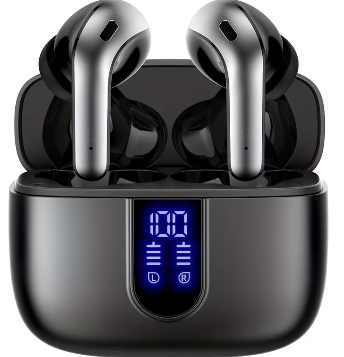 🔹ایرباد بی‌سیم با زمان پخش تا ۶۰ ساعت، نمایشگر LED باتری و حذف نویز در تماس‌های صوتی.