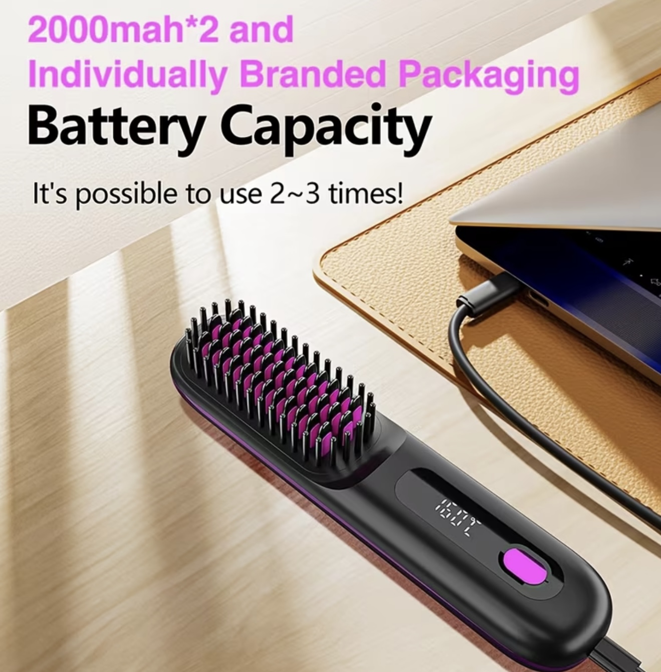 برس صاف‌کننده مو بدون سیم با گرم‌شدن سریع، شانه حرارتی برای زنان | سبک وزن، دارای پورت شارژ Type-C، ضدسوختگی، قابل شارژ از طریق USB