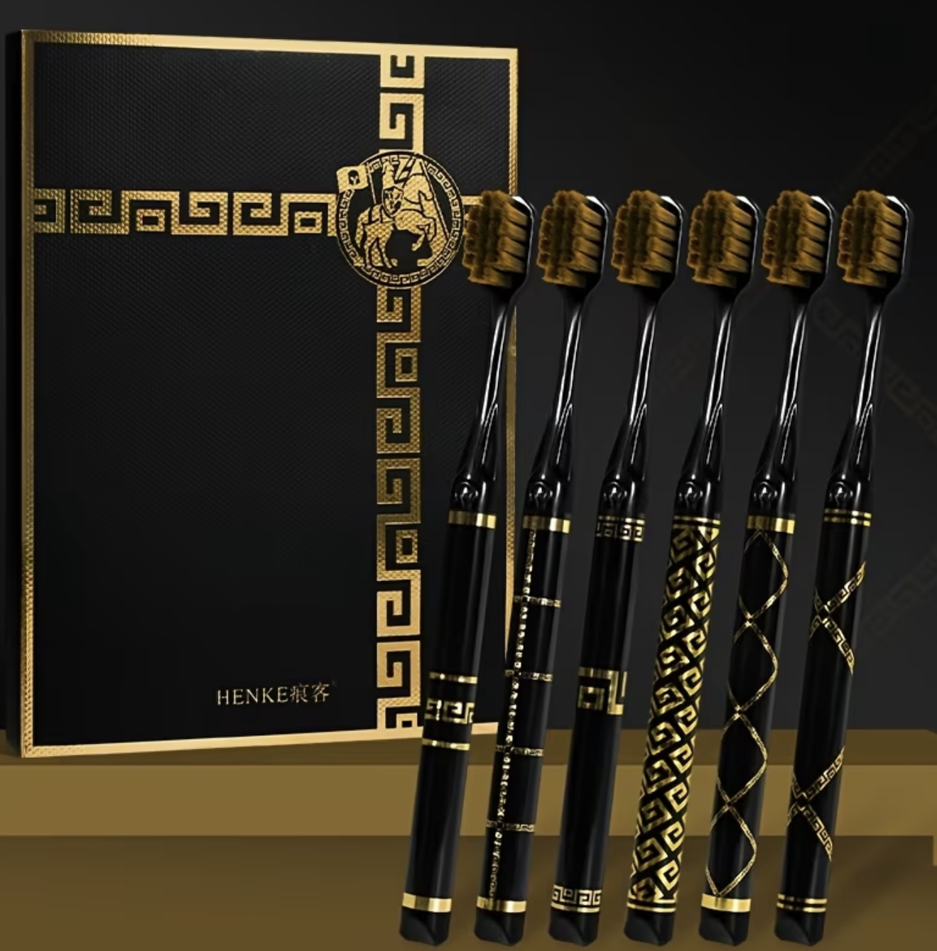 بسته ۶ عددی مسواک سری مشکی طلایی، با سر نرم و کیفیت بالا