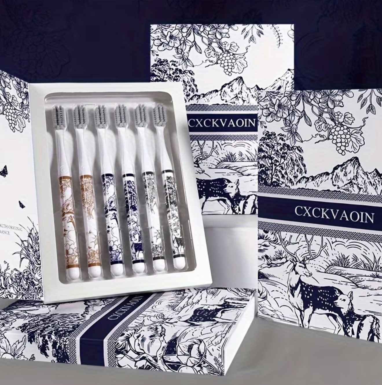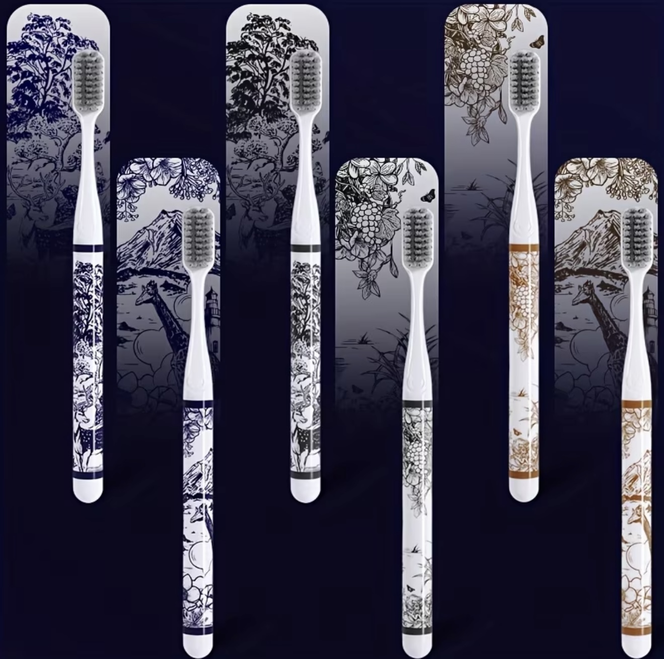 بسته ۶ عددی مسواک لوکس چاپدار CXCK برای بزرگسالان، با برس متوسط و سر کامل، طراحی شیک الهامگرفته از طبیعت، بادوام، بدون رایحه، دارای برسهای پلیپروپیلن،