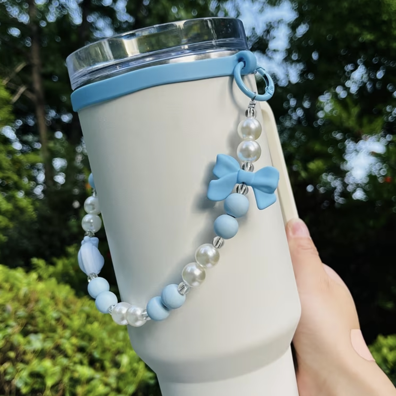 بند حمل بطری آب طرح فرانسوی با پاپیون و قلب، تزئینشده با مهرههای مرواریدی