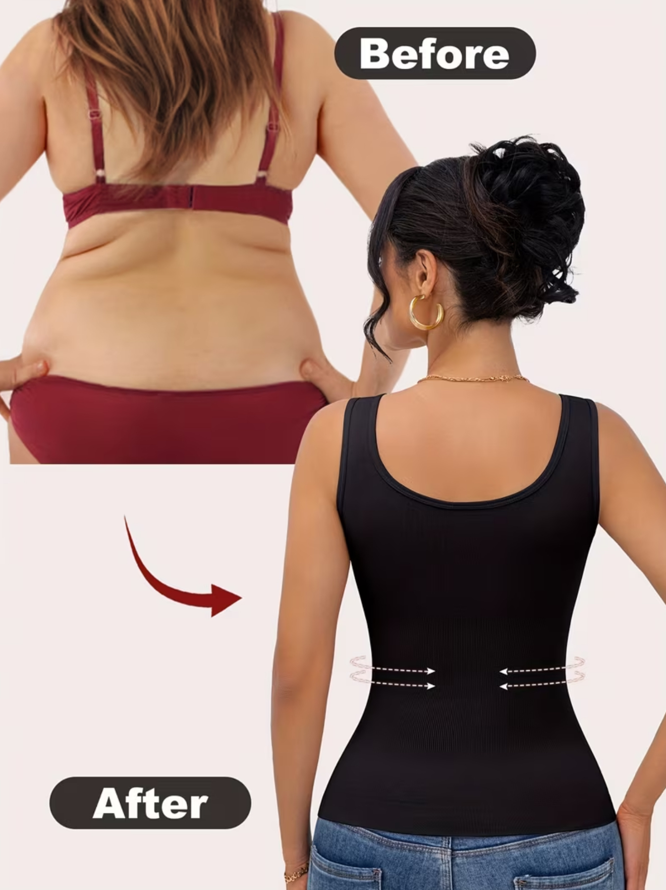تاپ با قابلیت جمعکننده شکم، طراحی ریب (بافت شیاردار) با تنفسپذیری بالا، بدون پد، کمک به حفظ فرم صحیح بدن (پشتیبانی از کمر)،با پارچه ساده و کشسانی بالا