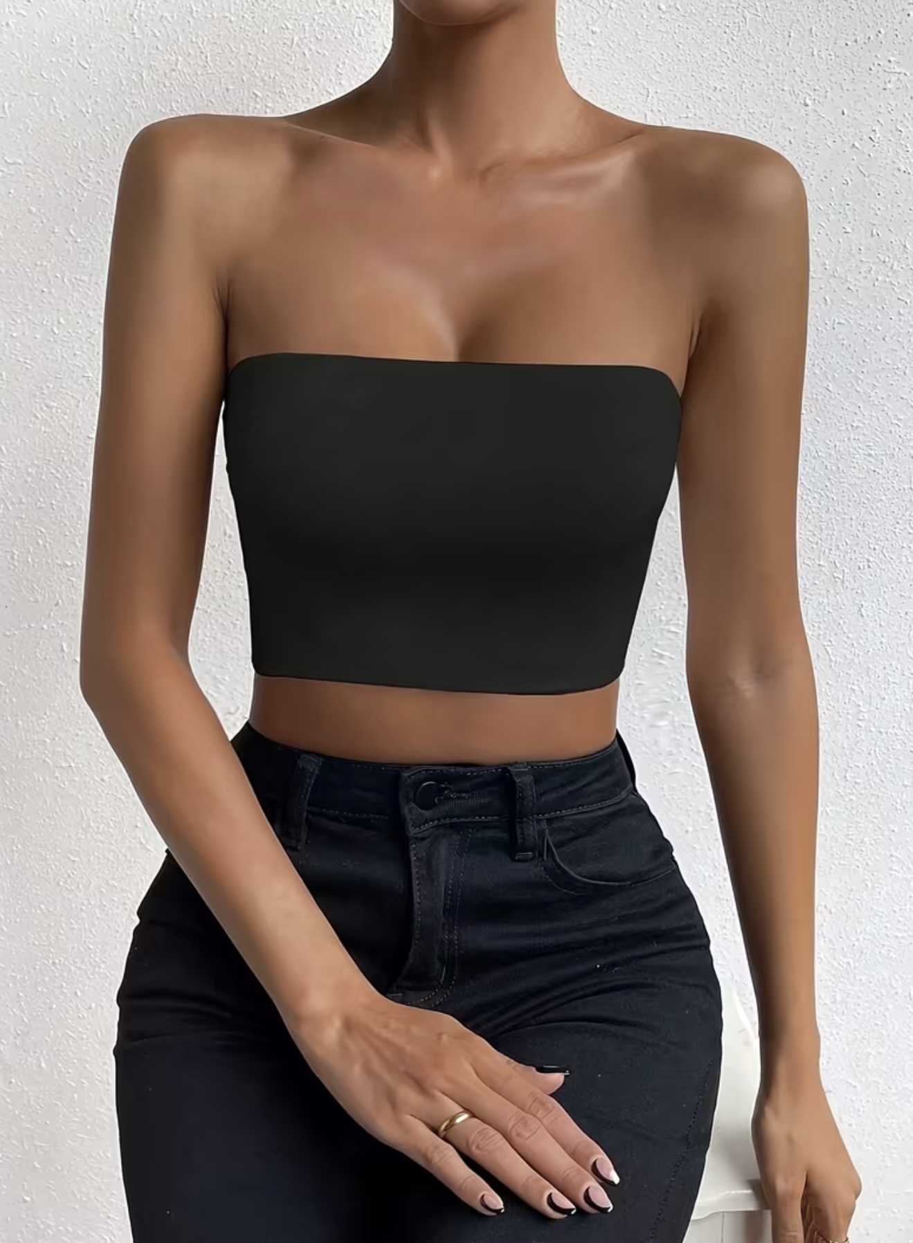 تاپ بدون بند زنانه، با طراحی کژوال و مینیمال