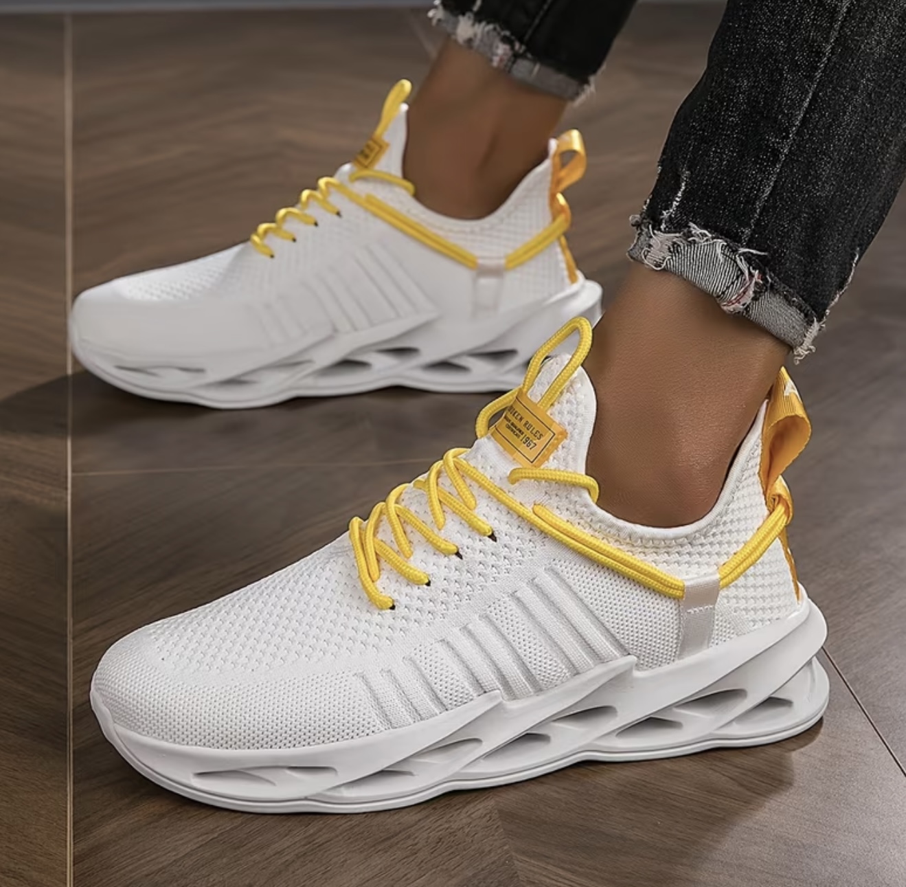 کفشهای کتانی تیغهای قابل تنفس – کفشهای سبک و ضد لغزش با جذب ضربه، مناسب دویدن، تنیس، باشگاه و پیادهروی