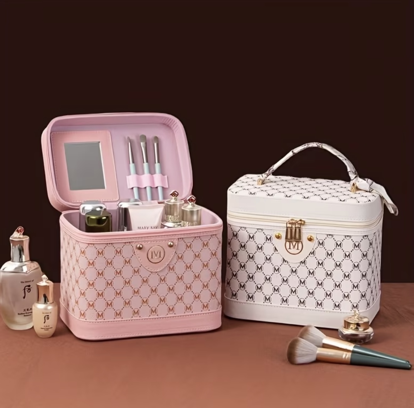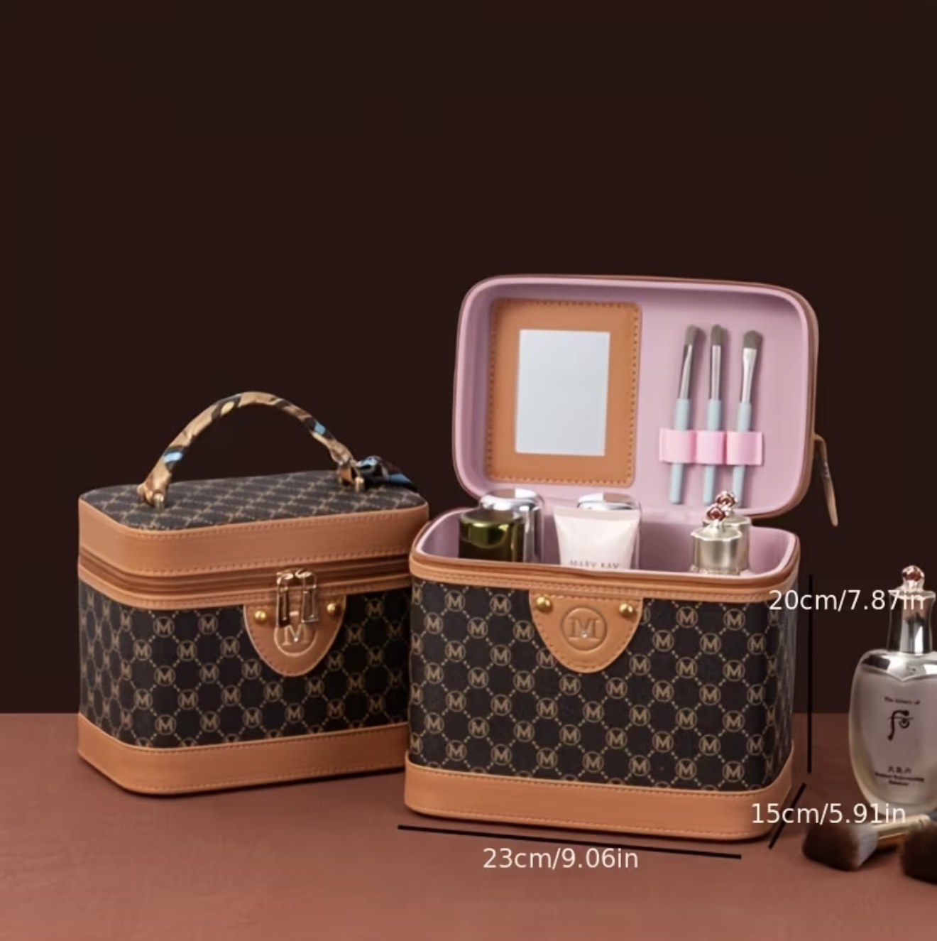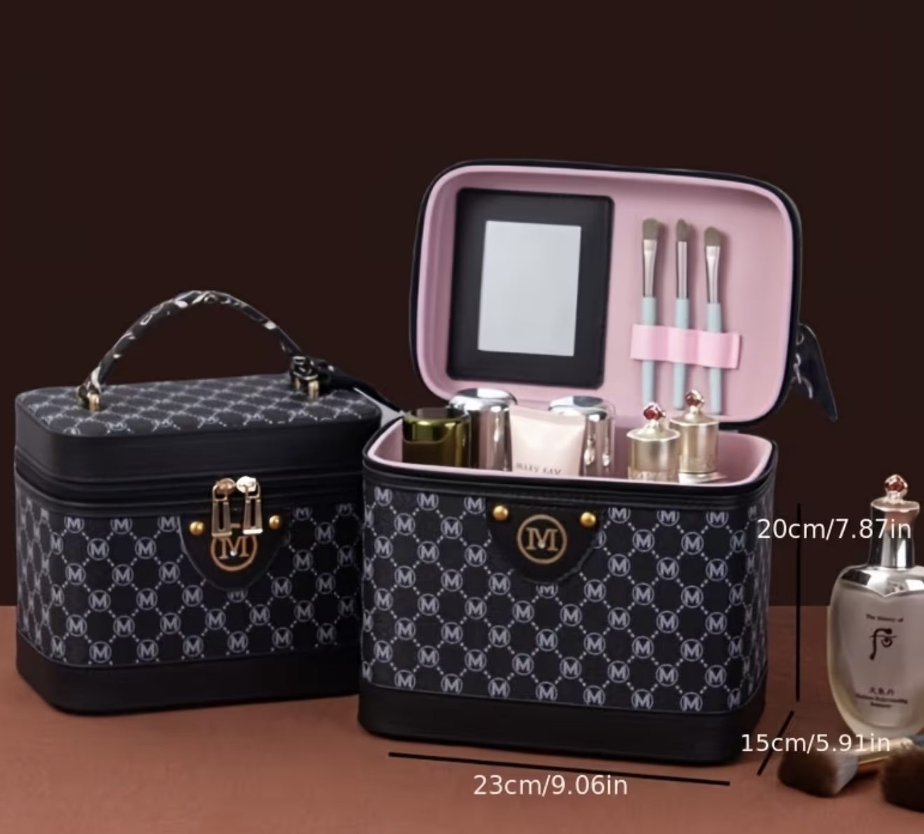 جعبه آرایش جادار و قابل حمل با آینه و جای برس
