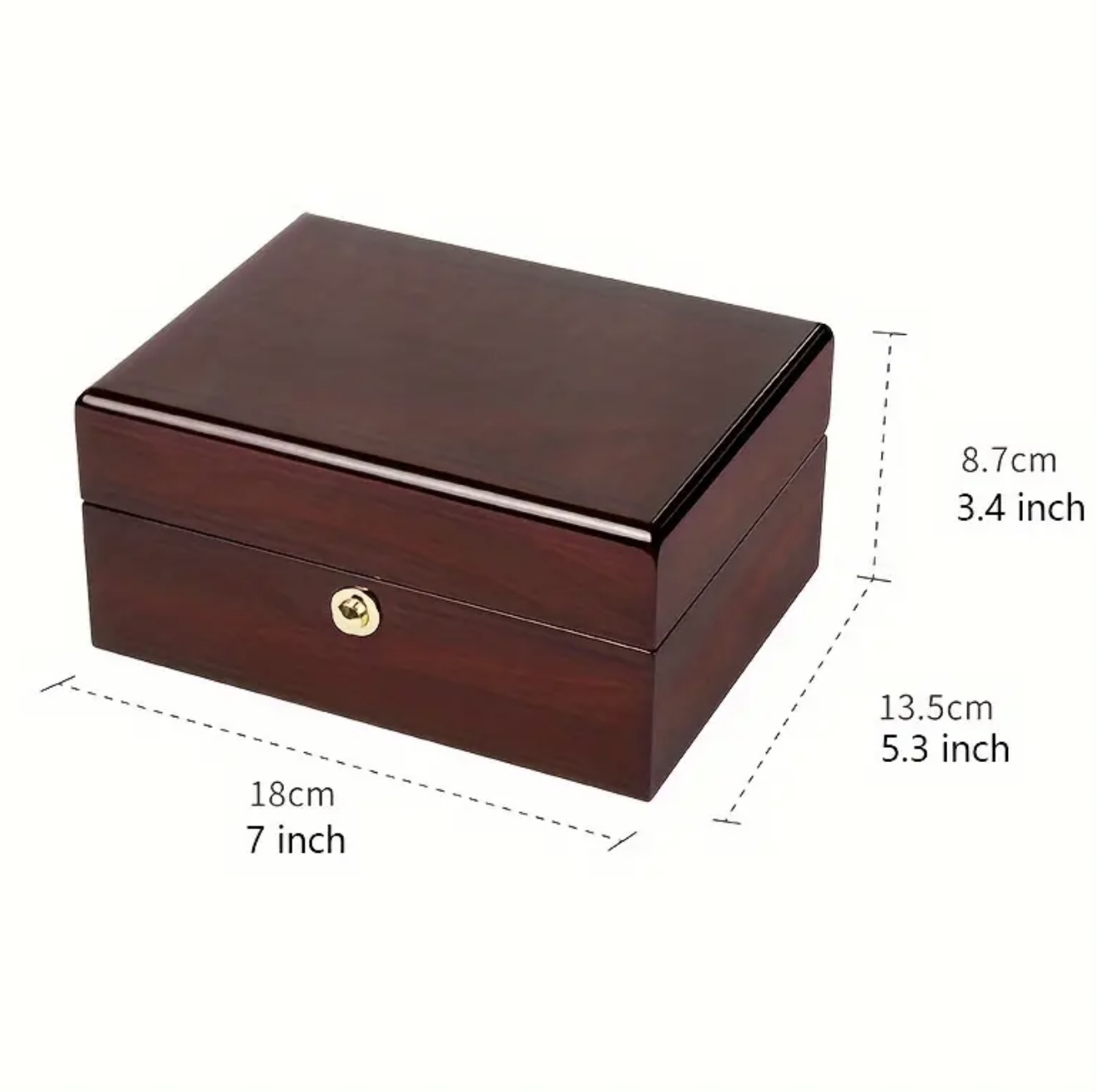 جعبه ساعت گرد قفلدار – جعبه تک ساعت، ساختهشده از چوب با رنگ پیانو، بستهبندی لوکس برای ساعت و جواهرات