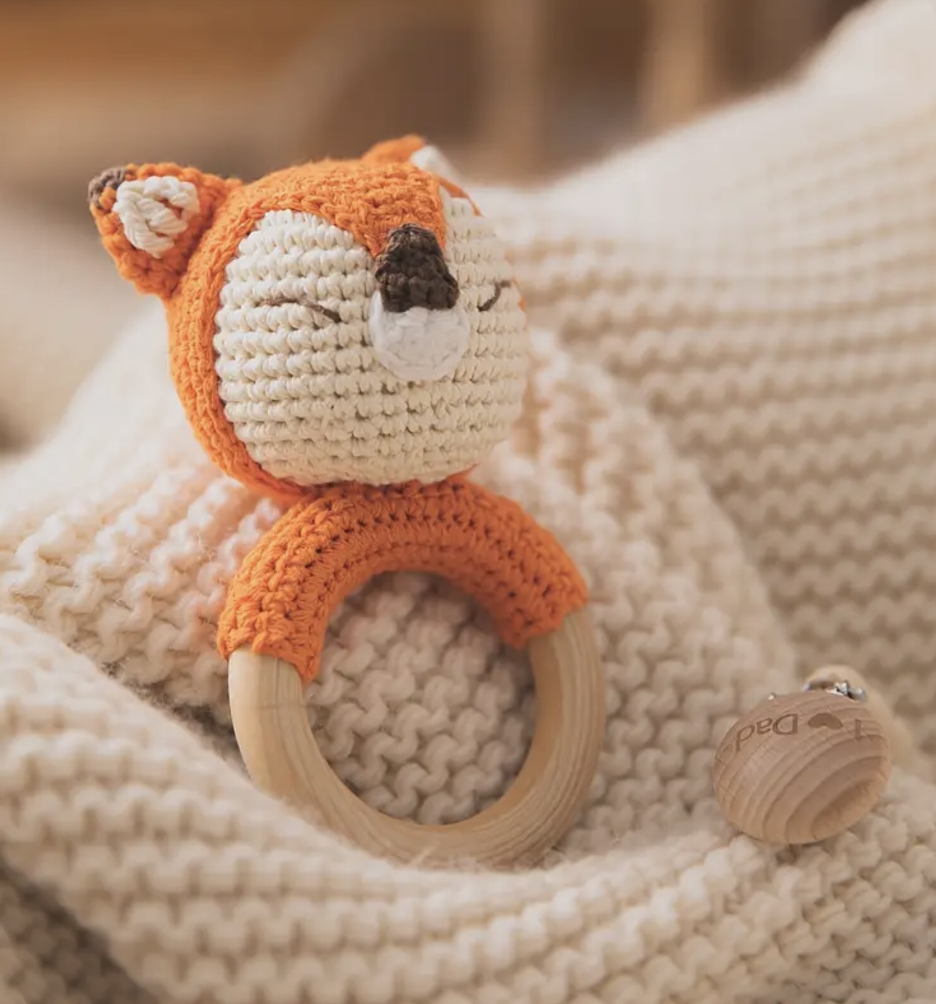 جغجغه حیوانی قلاب‌بافی‌شده طرح روباه کارتونی
