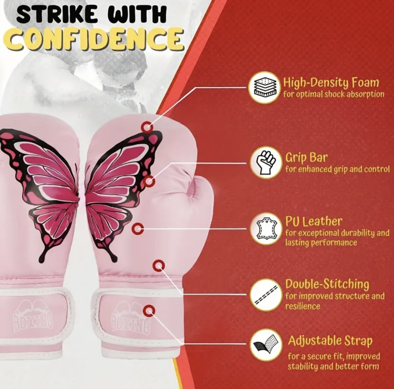 & Free Shippingدستکش بوکس مدل پروانه – دارای بند قابل تنظیم، ساخته شده از چرم مصنوعی
