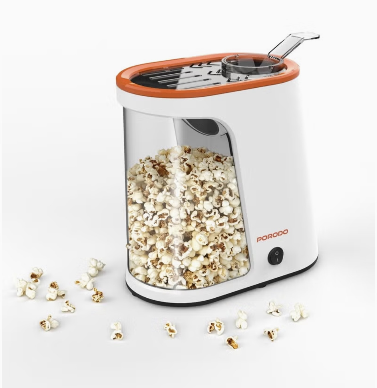 دستگاه پاپ‌کورن ۱۲۰۰ وات با مخزن قابل جدا شدن، بدون نیاز به روغن، دارای کلید روشن/خاموش، ۲ تا ۴ دقیقه زمان پخت