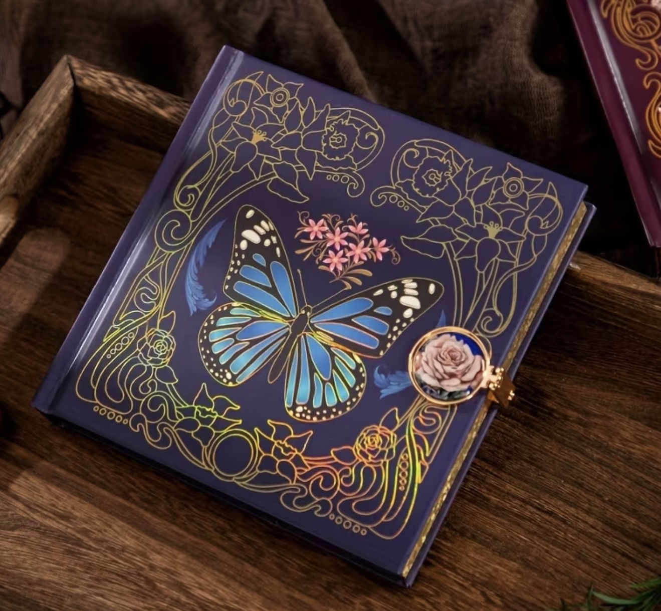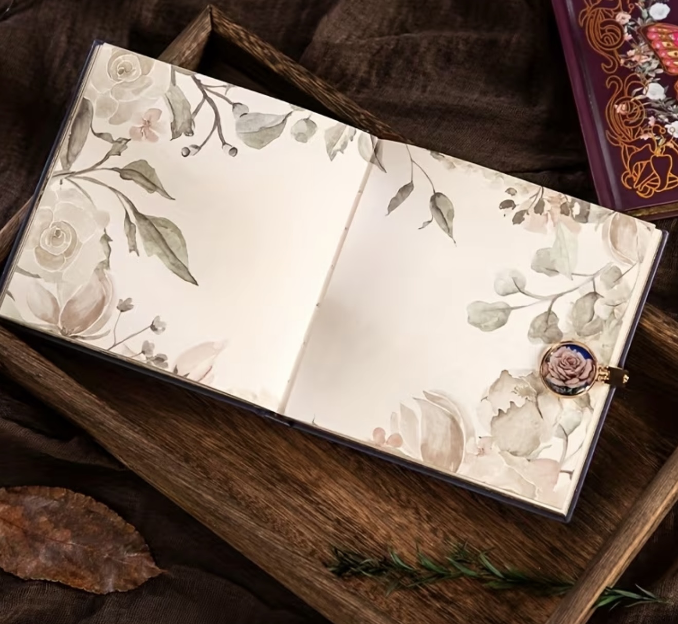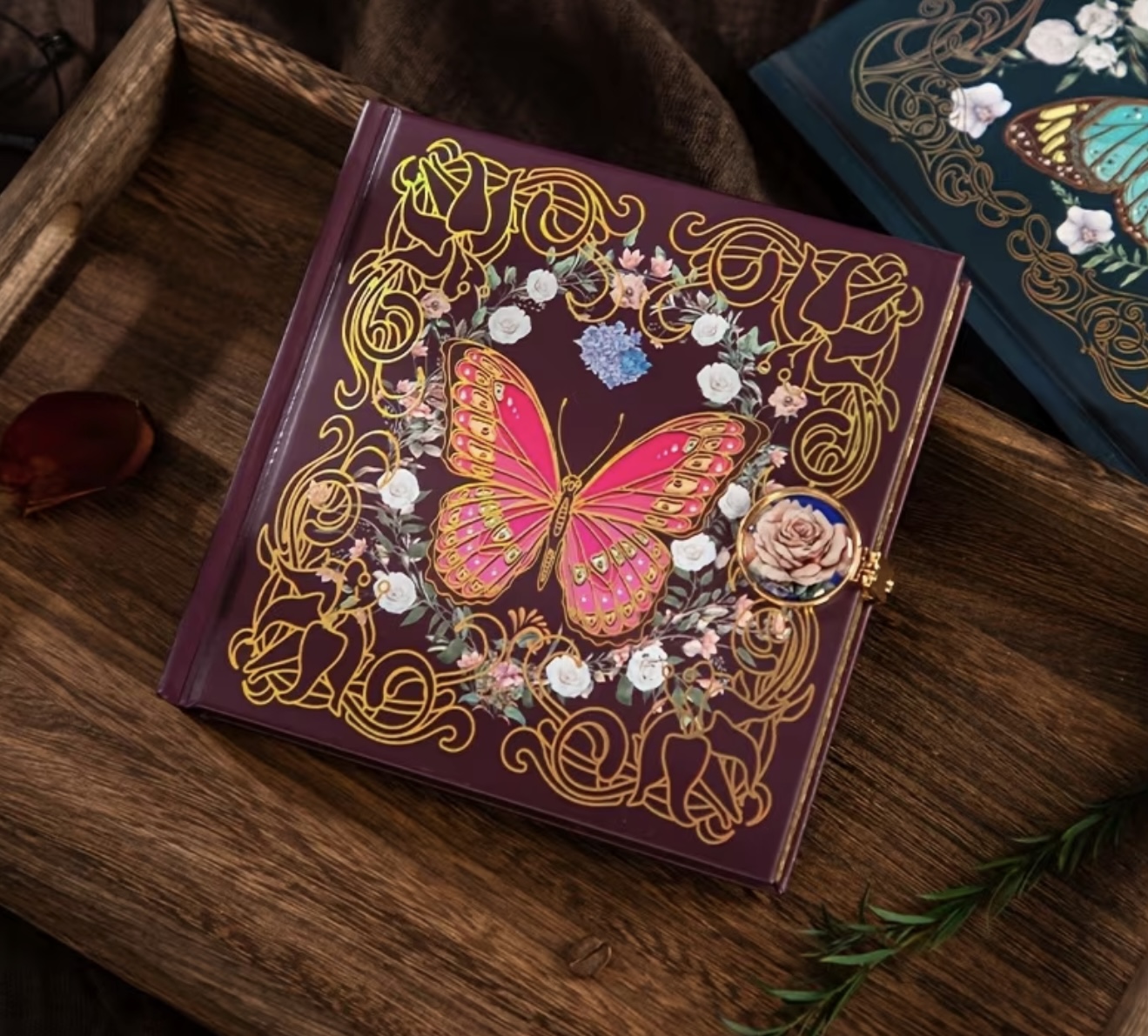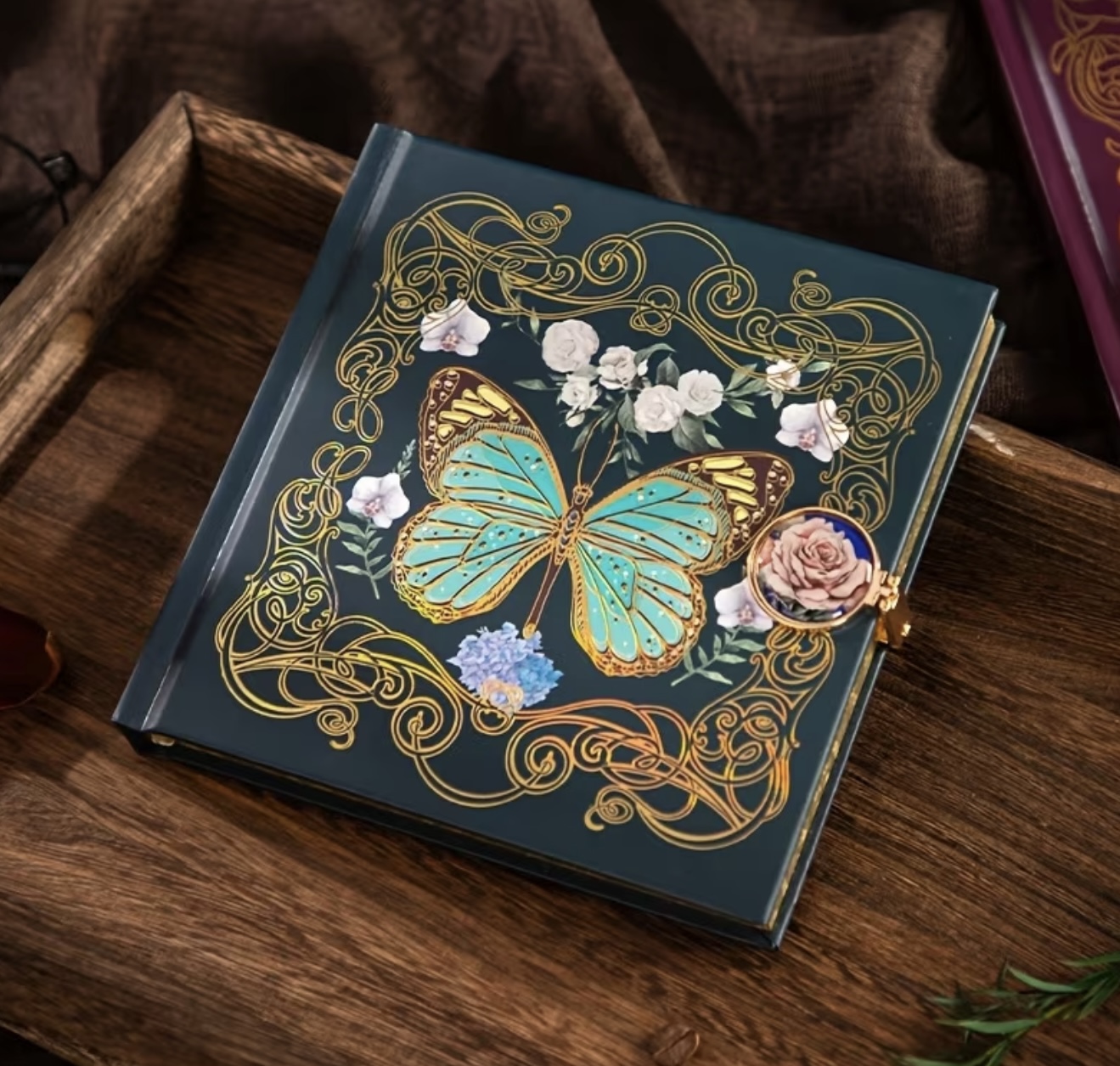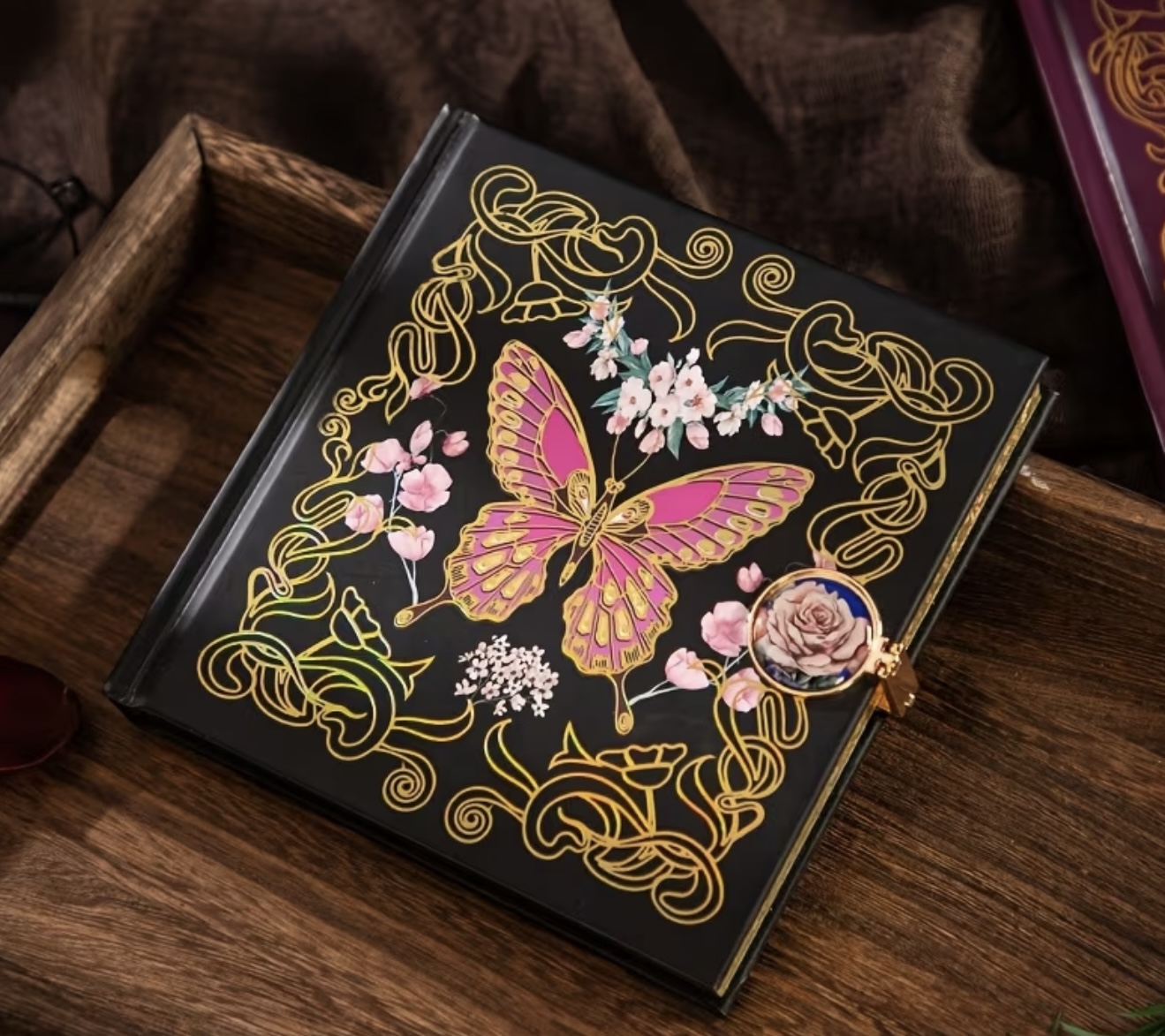 & Free Shippingدفتر وینتیج با طرح گل رز و پروانه