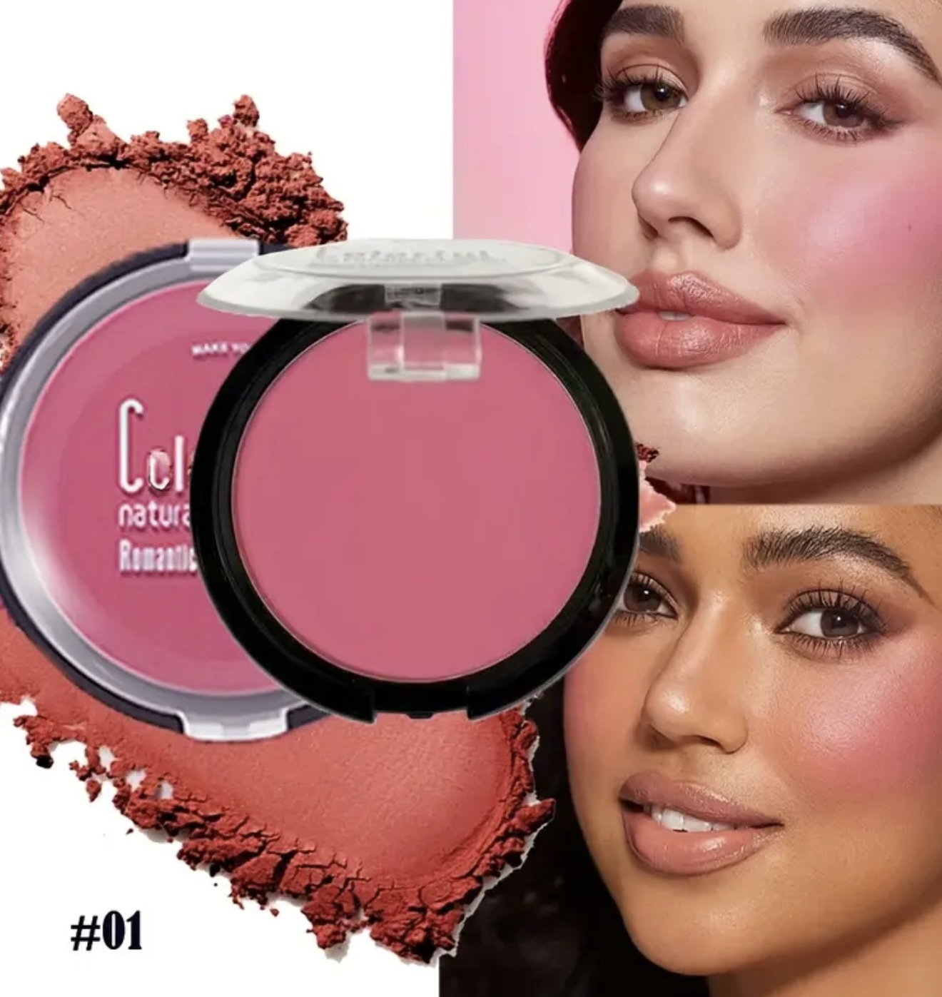 رژگونه جامد ۴ رنگ – پوشش مات، ضدآب و ماندگار، پودر سبک برای جلوه طبیعی قرمز، مناسب آرایش چندکاره صورت، محصول آرایشی با بسته‌بندی شیک، رژگونه با پوشش مات