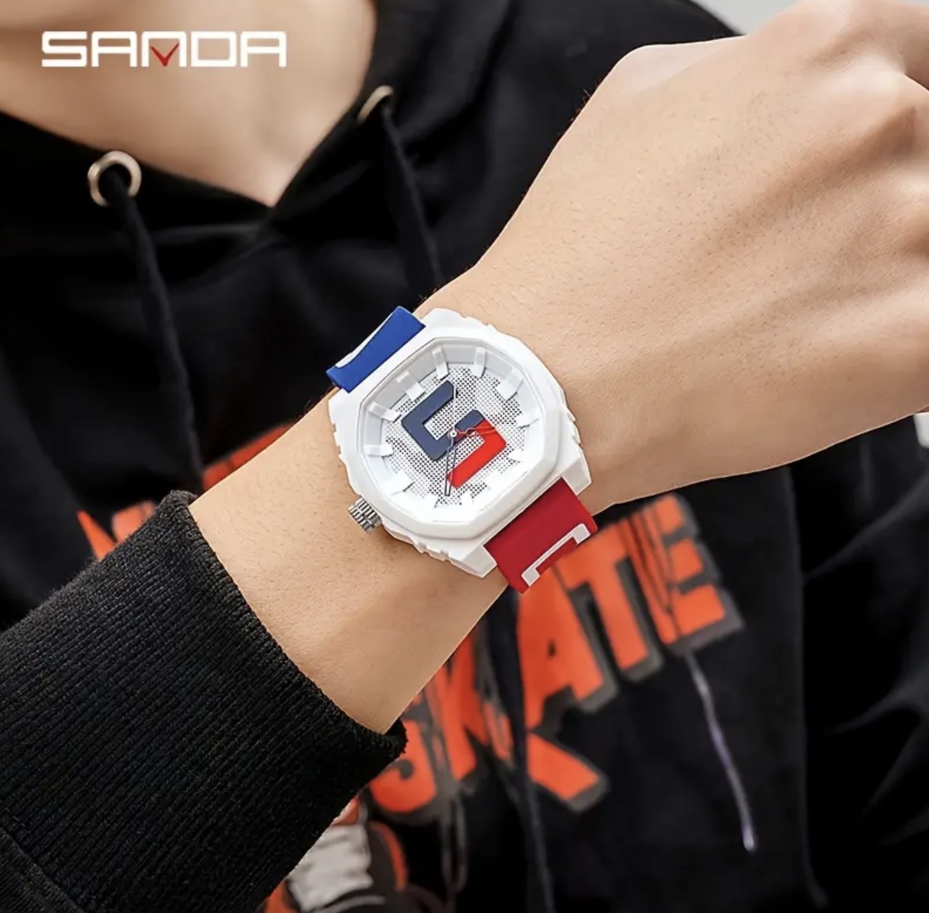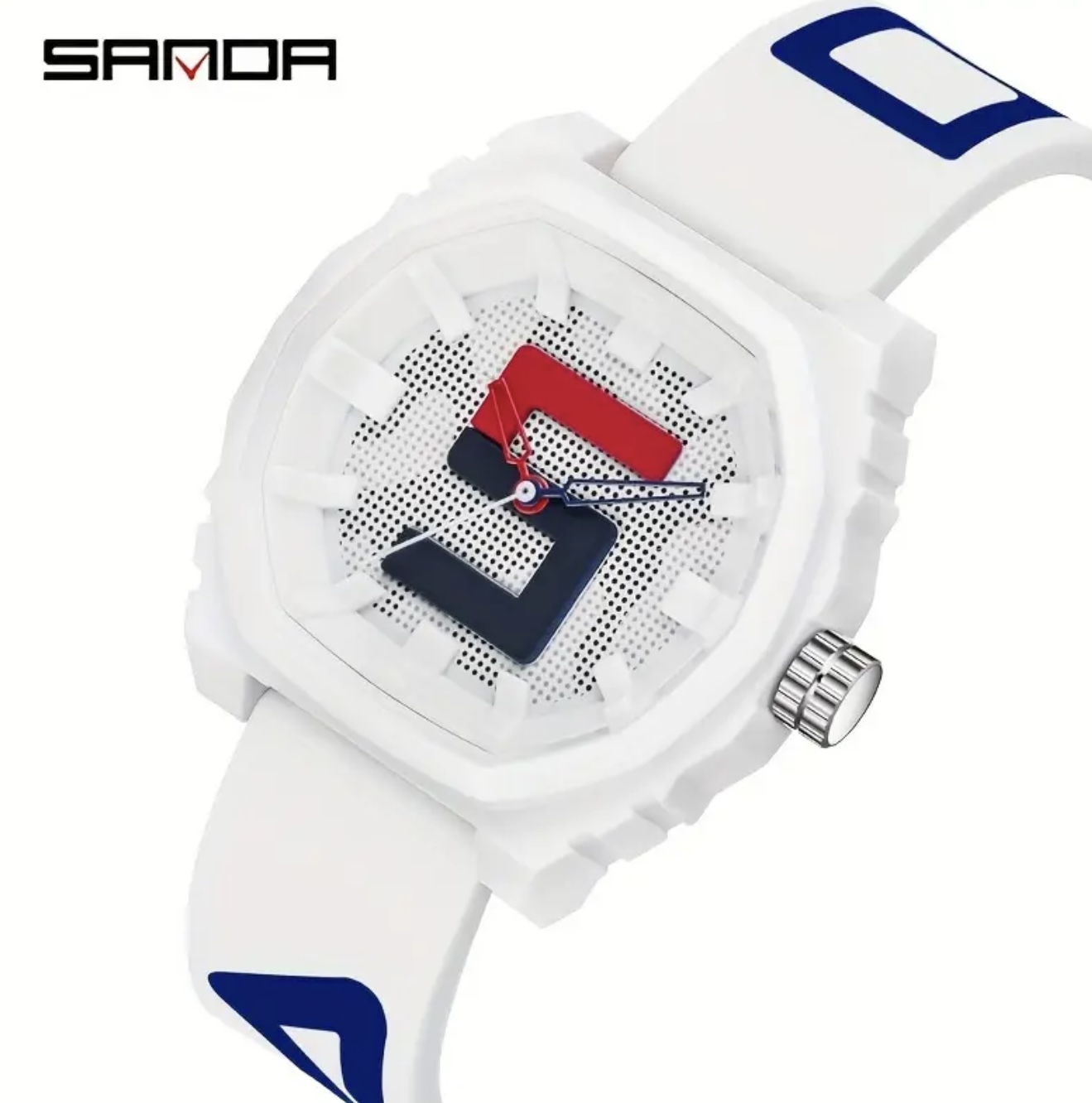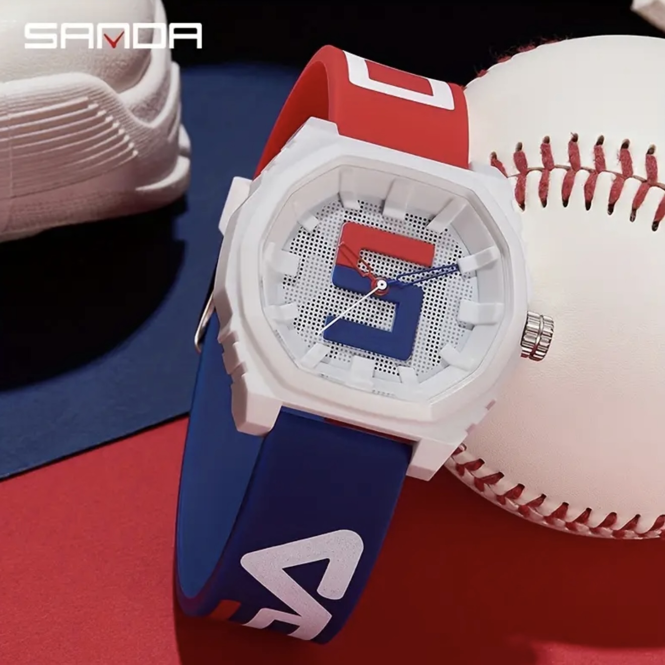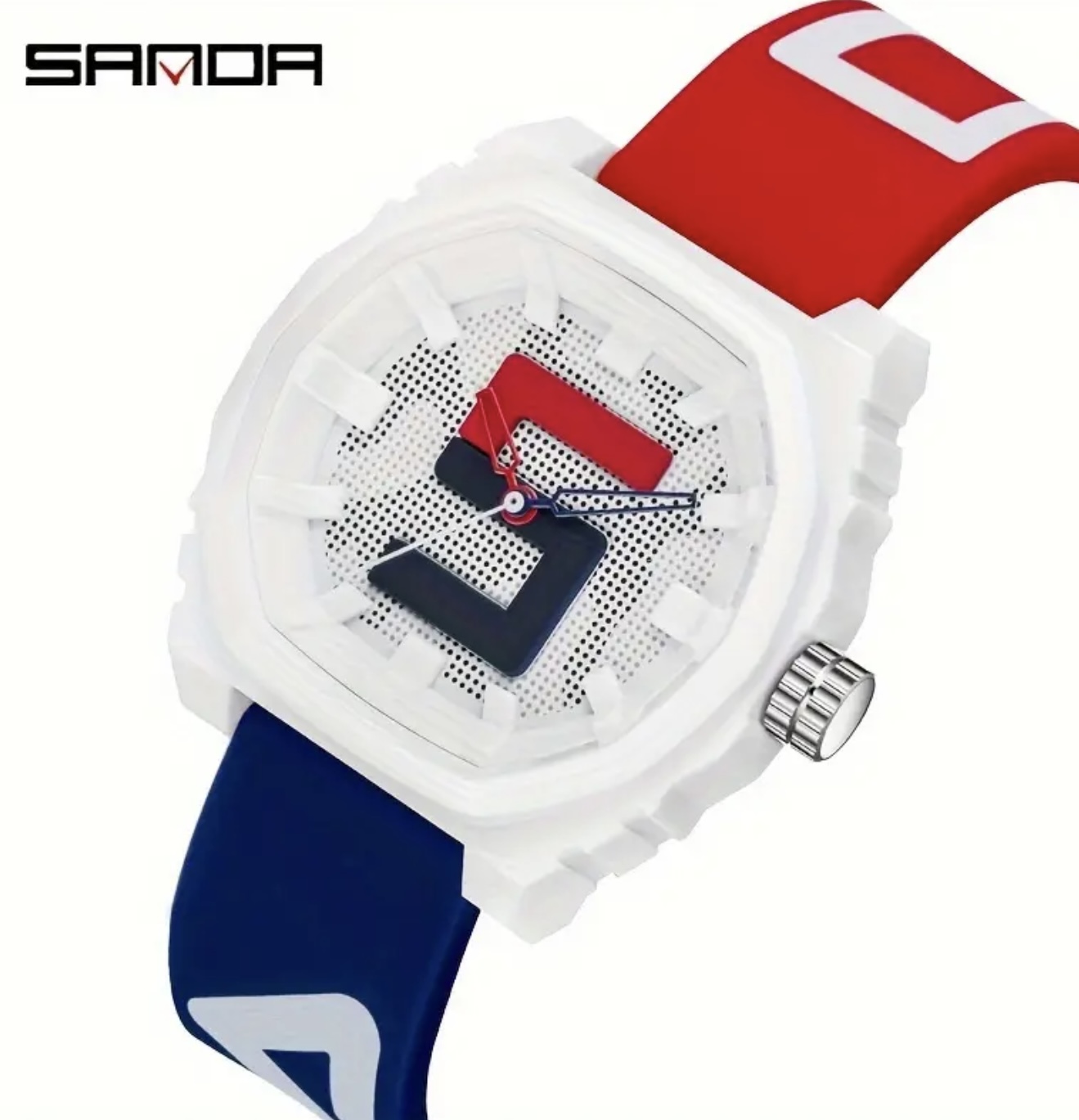 ساعت دیجیتال بزرگ Sanda با بند قرمز و آبی – مقاوم در برابر آب
