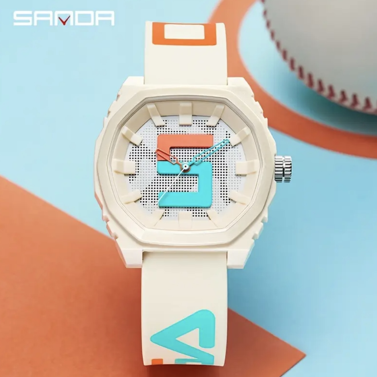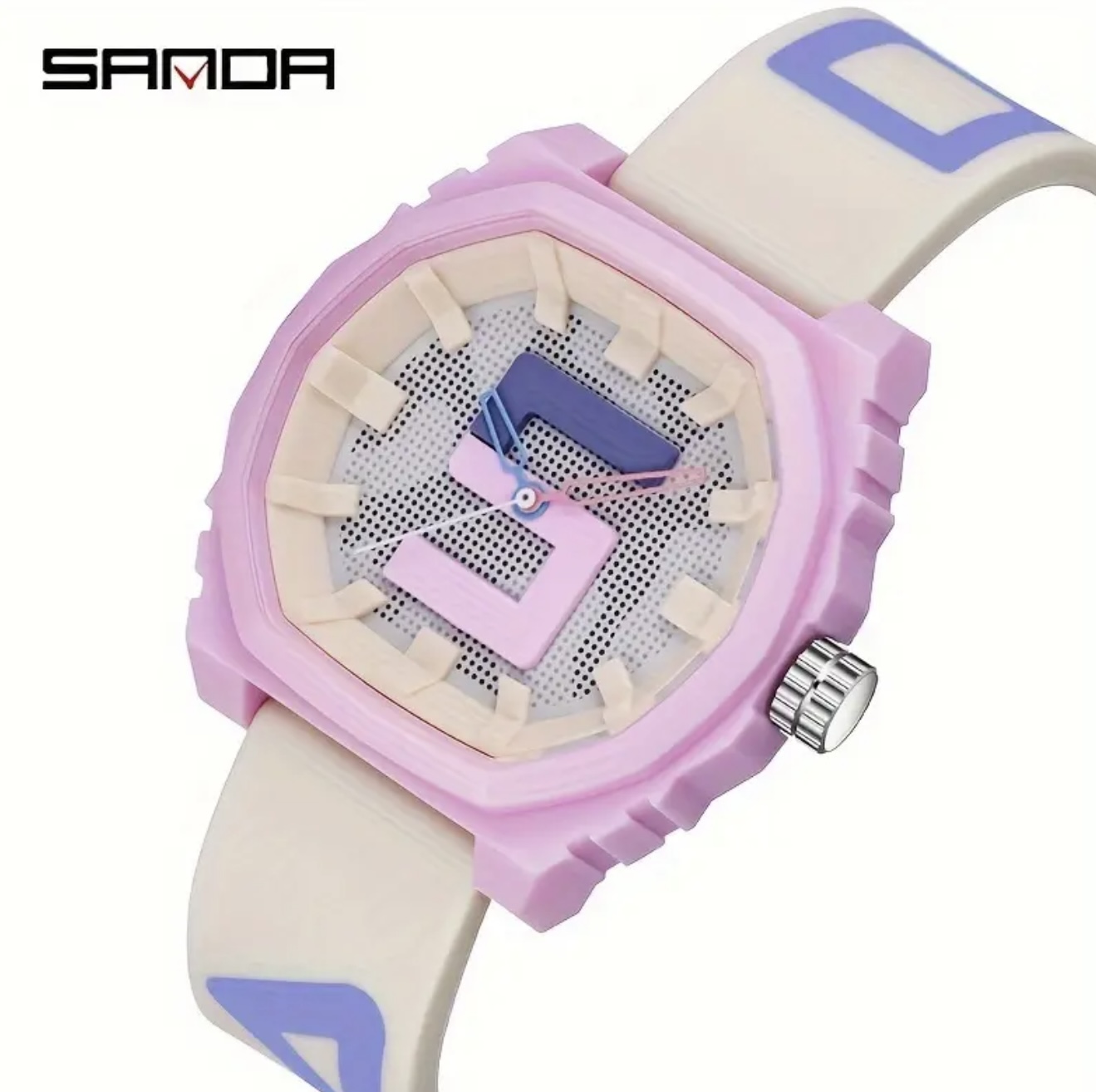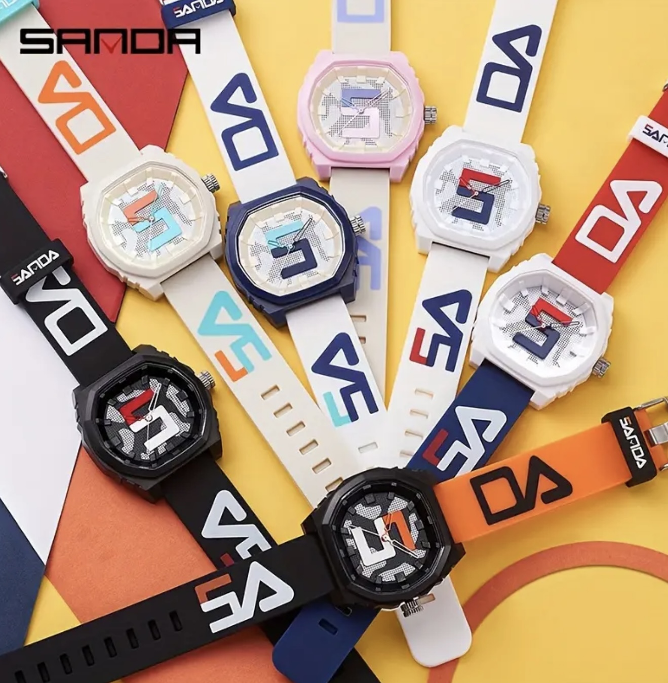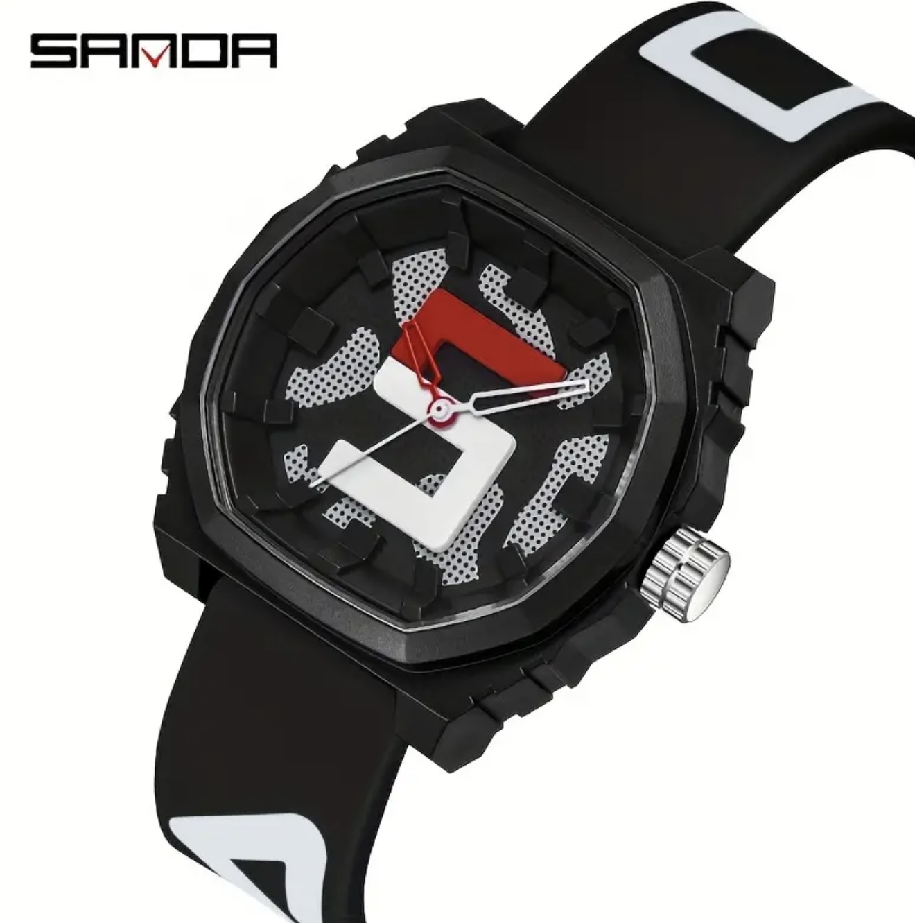 ساعت دیجیتال بزرگ Sanda با بند قرمز و آبی – مقاوم در برابر آب