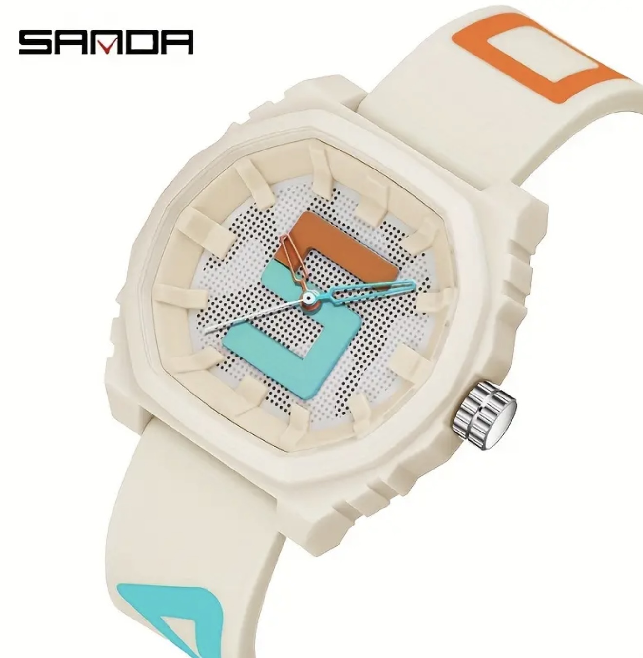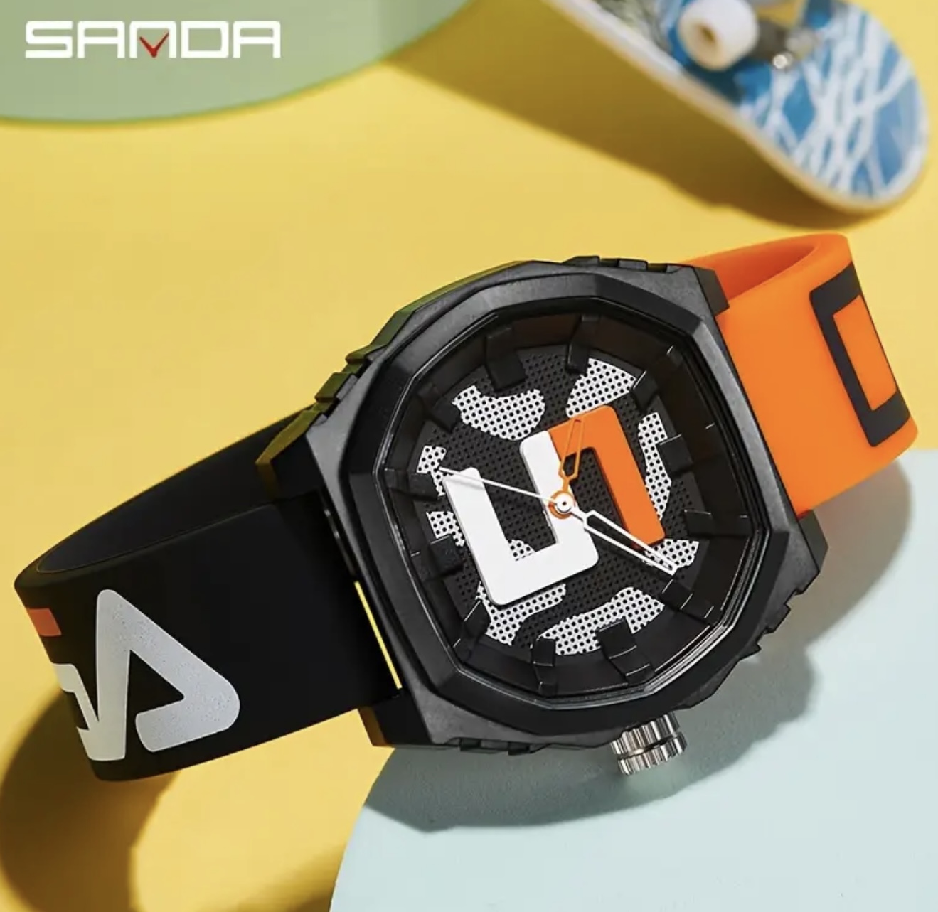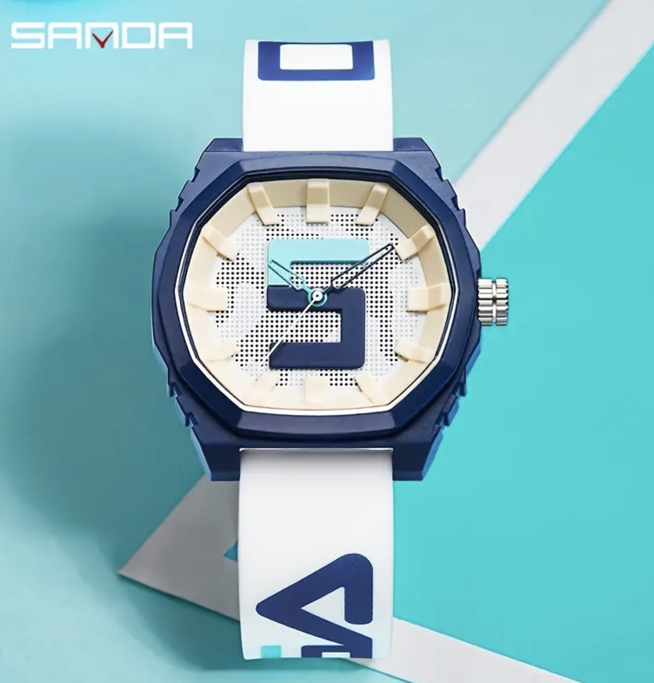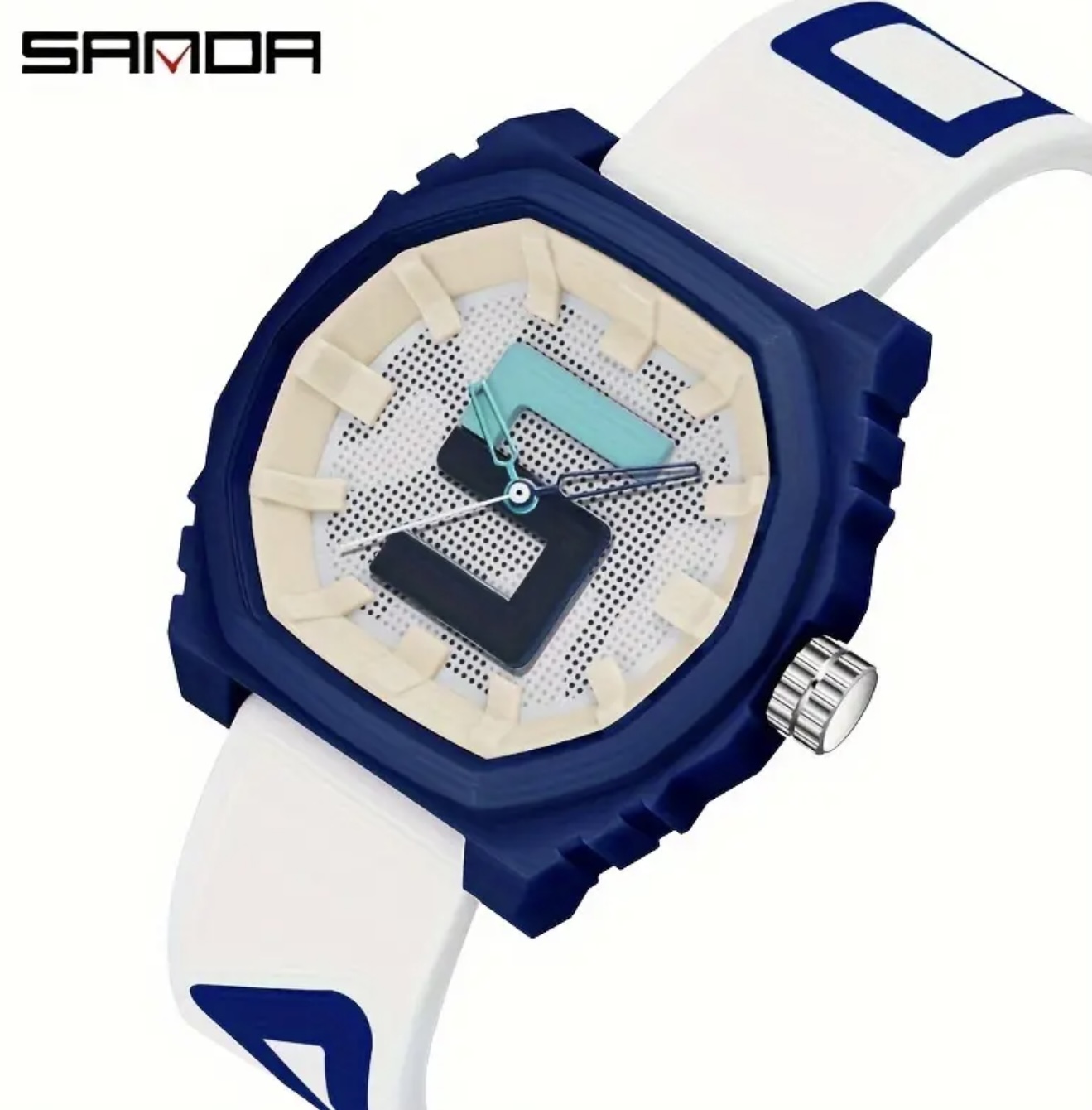 ساعت دیجیتال بزرگ Sanda با بند قرمز و آبی – مقاوم در برابر آب