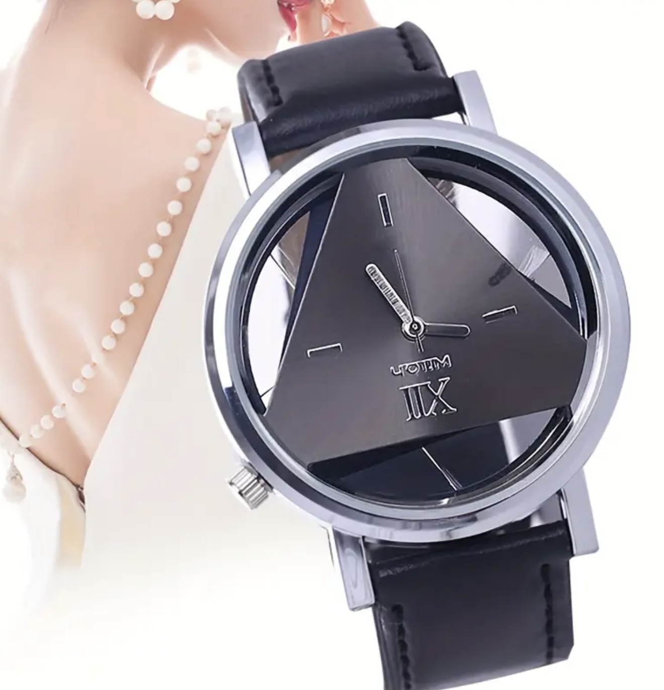 ساعت مچی زنانه فشن کوارتز – قاب گرد از جنس آلیاژ، بند چرمی مصنوعی، باتری دکمهای غیرقابل شارژ، ساعت شیک و مدرن