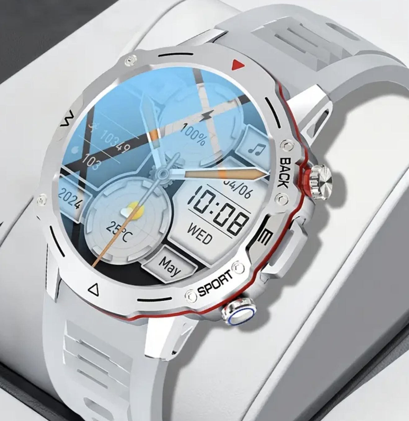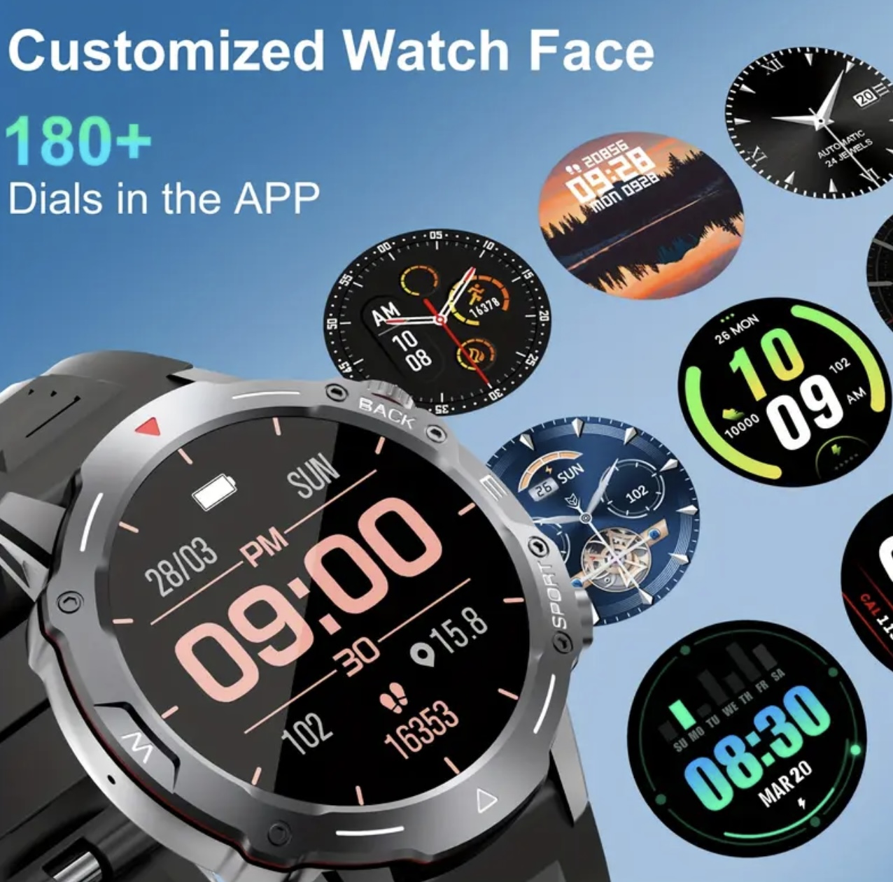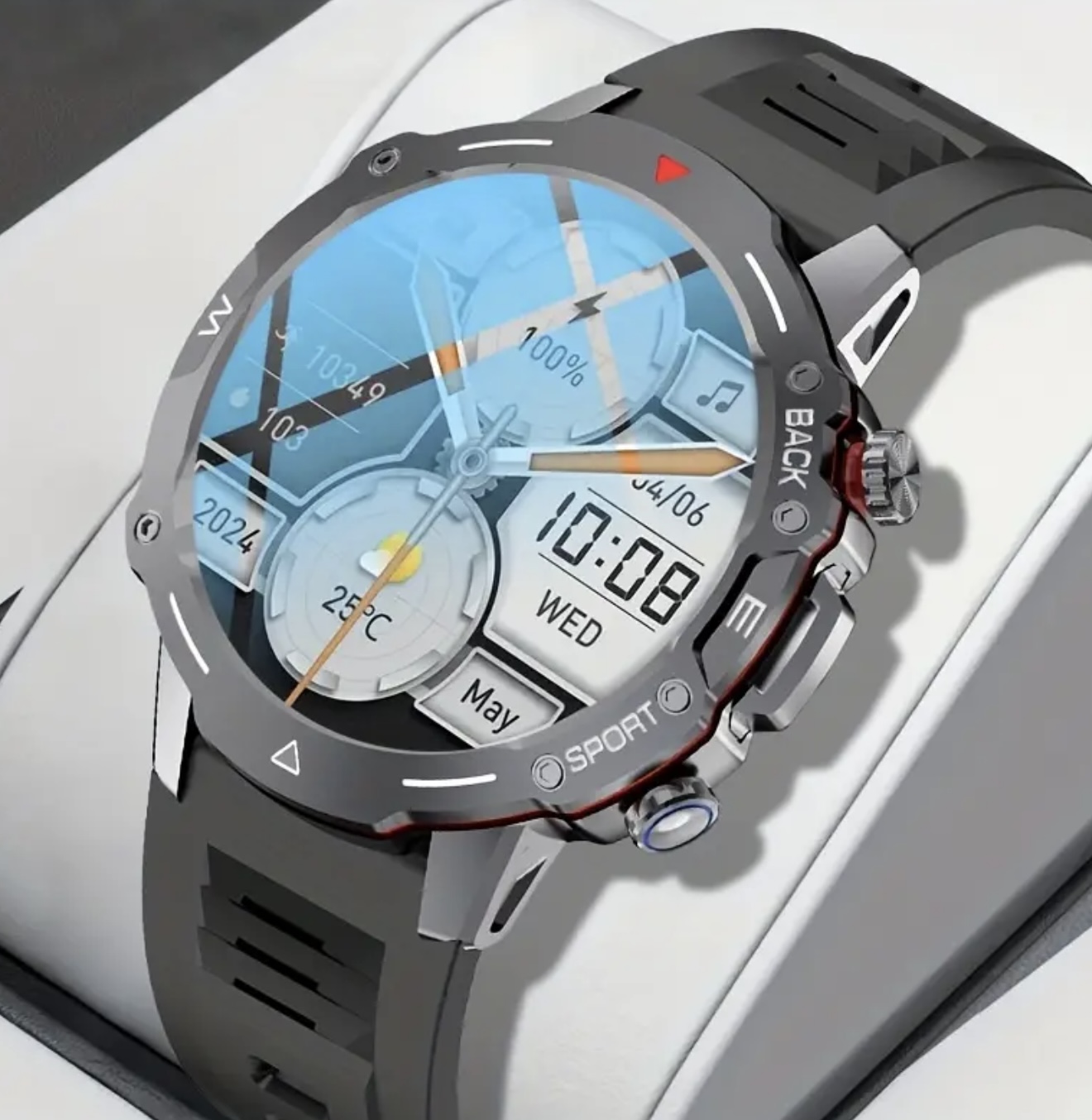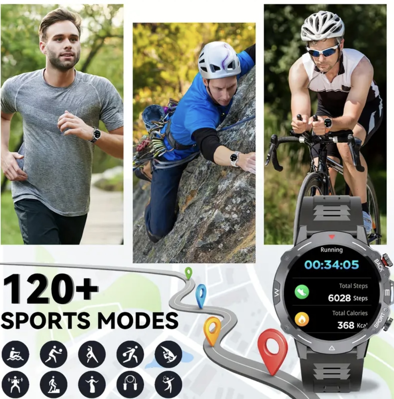 ساعت هوشمند ورزشی – مناسب فعالیت‌های بیرونی، دارای قابلیت تماس و اعلان‌ها، یادآوری چندین اپلیکیشن، بیش از ۱۰۰ حالت ورزشی، ردیاب فعالیت با کیفیت بالا، سازگار با آیفون و اندروید