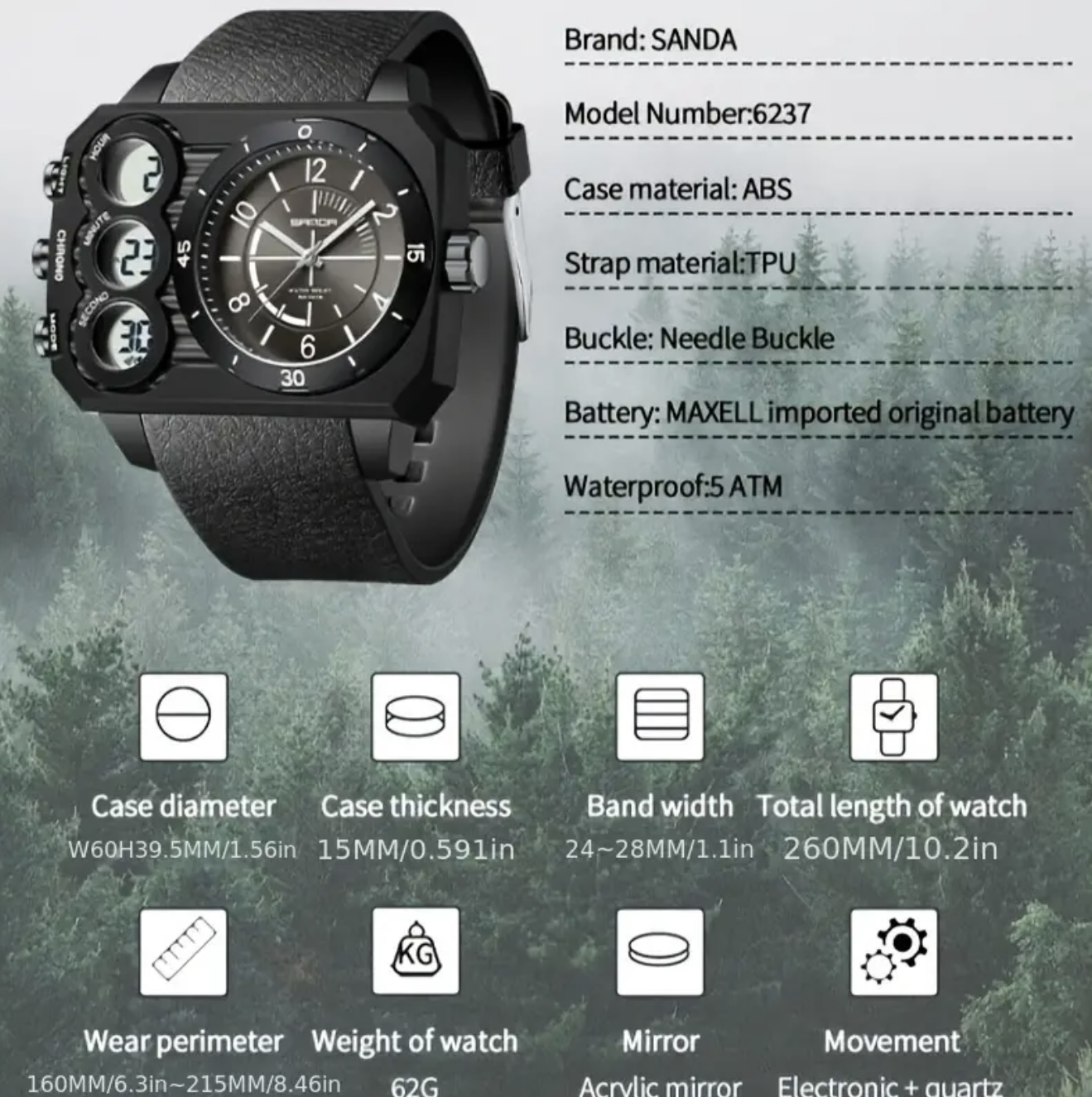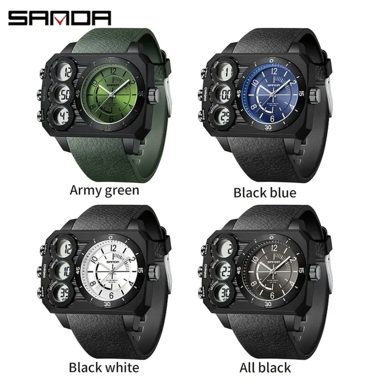 & Free Shippingساعت SANDA با نمایش دوگانه و صفحه بزرگ