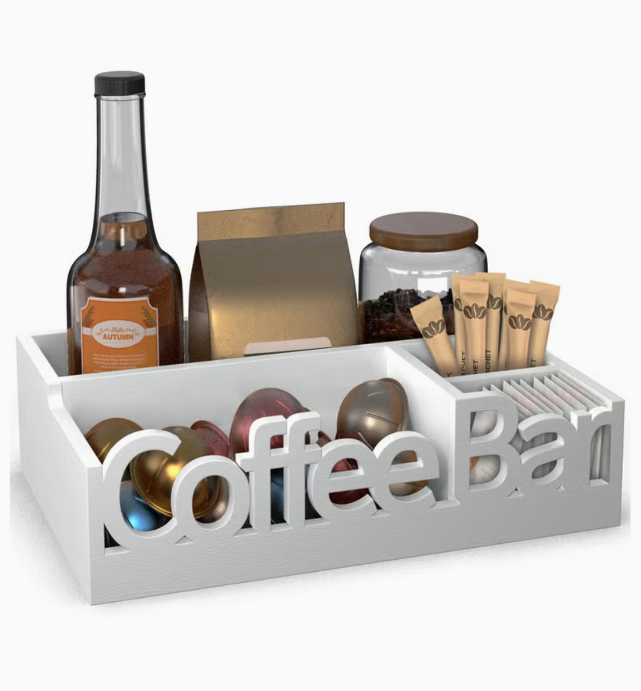 سبد نگهداری لوازم قهوه و چای روی کانتر آشپزخانه،