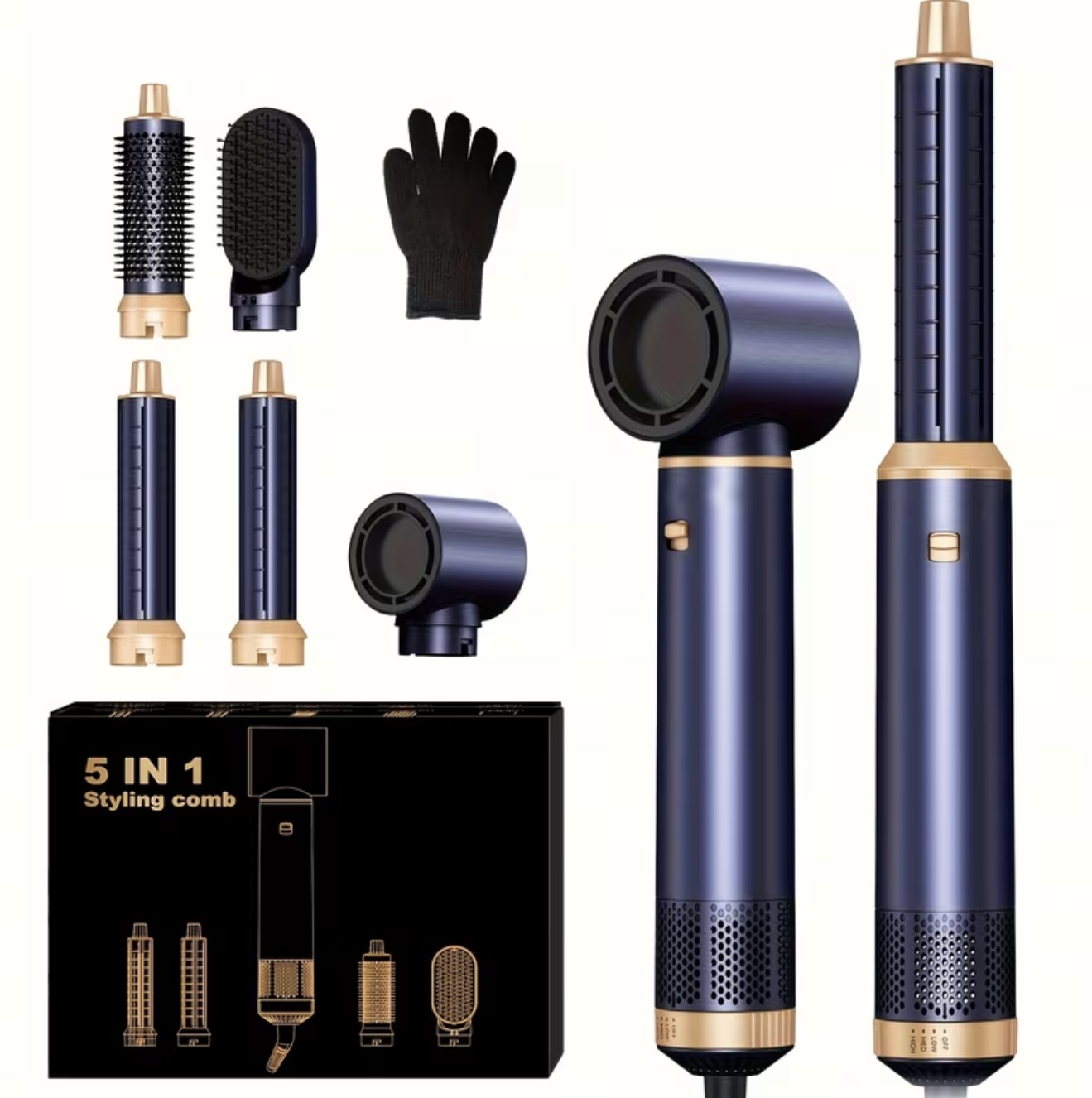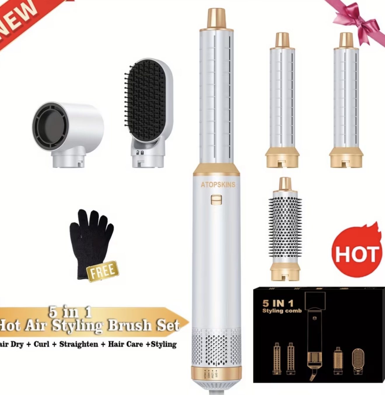 & Free Shippingست برس حرارتی ۵ در ۱ شامل سشوار پرسرعت، فرکننده اتوماتیک مو و برس صافکننده (اتو مو)
