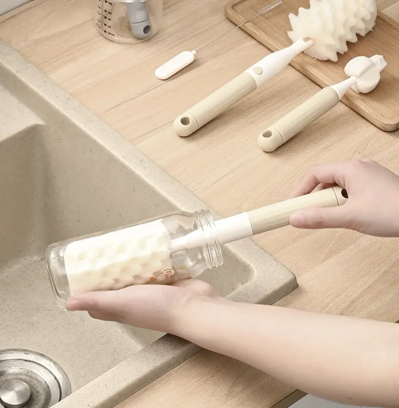 ست برس شیشه شیر – شامل اسفنج و برس سرشیشه، ابزار تمیزکننده نی،