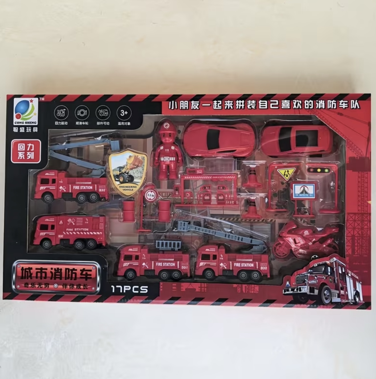 ست بزرگ کامیون آتشنشانی، شامل وسایل نقلیه مهندسی و کامیون آتشنشانی با نیروی اینرسی