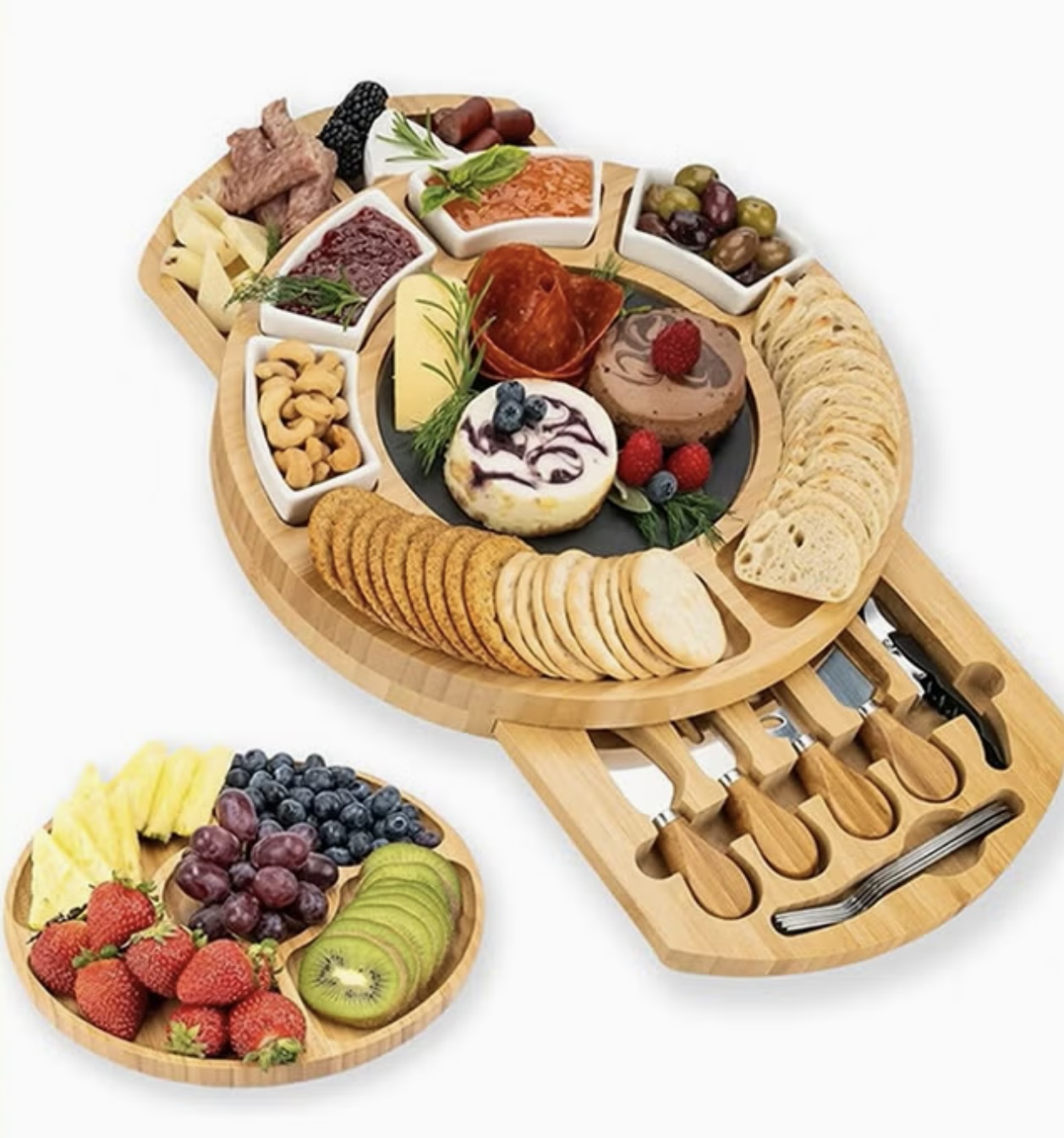 ست تخته گرد بامبو همراه ست چاقو