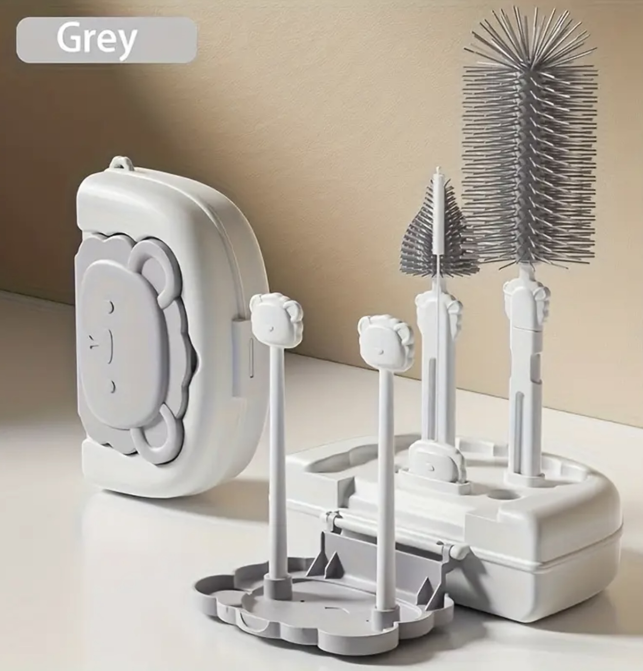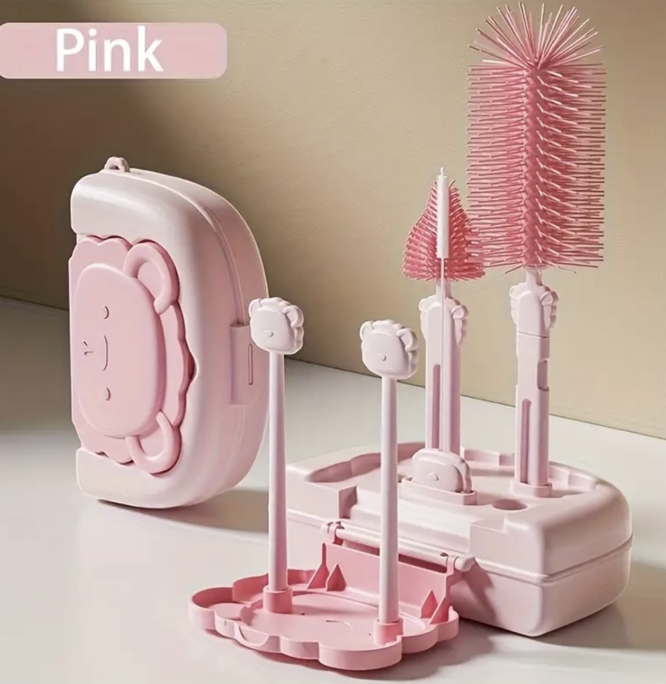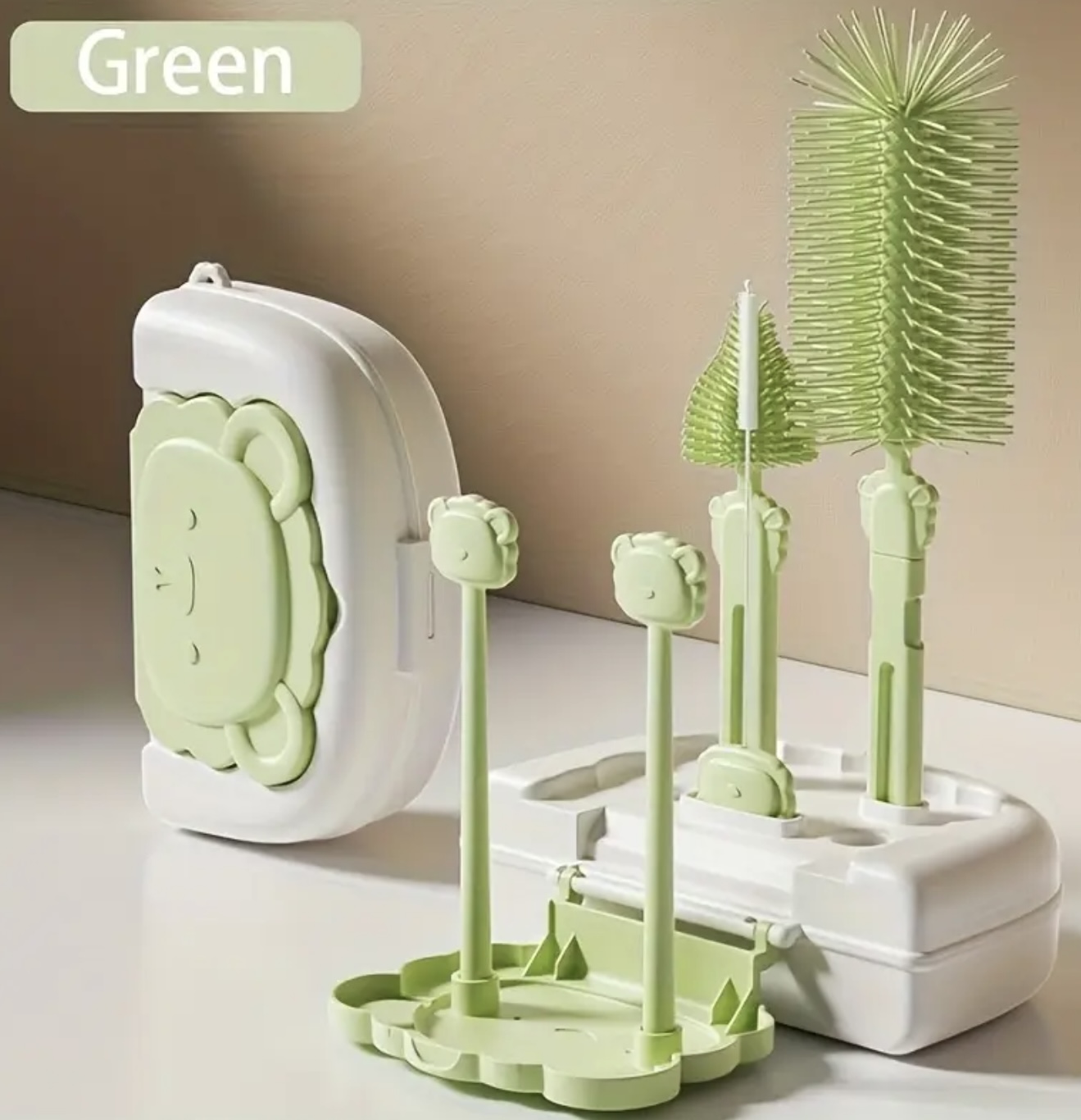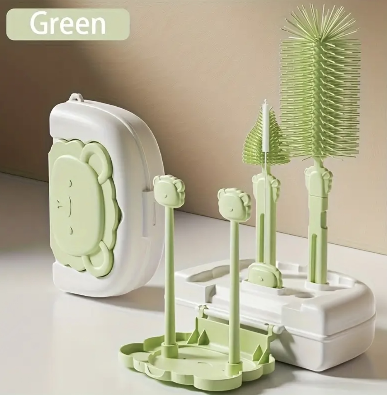 ست تمیزکننده و شستشوی شیشه شیر شامل: برس شیشه شیر، برس سرشیشه، برس نی، قفسههای آبچکان و خشککن، ست قابلحمل و آسان برای استفاده
