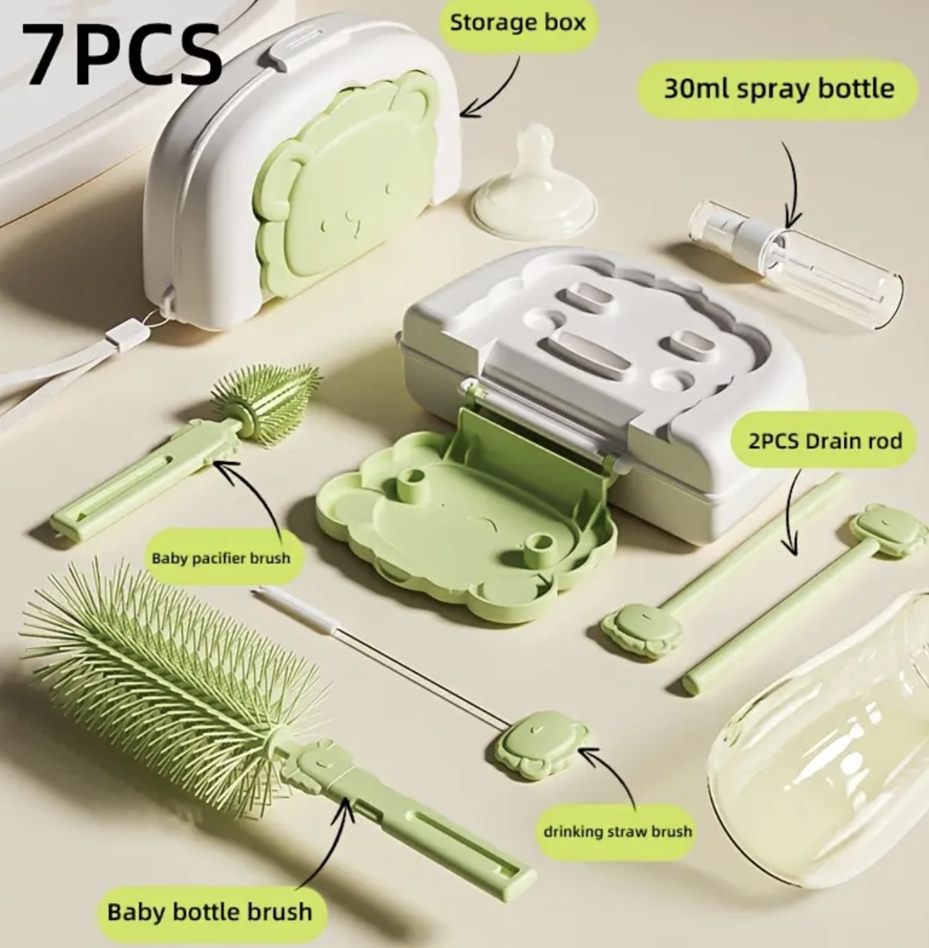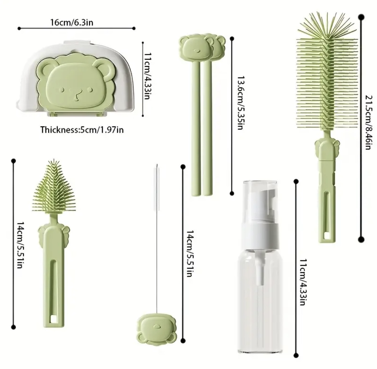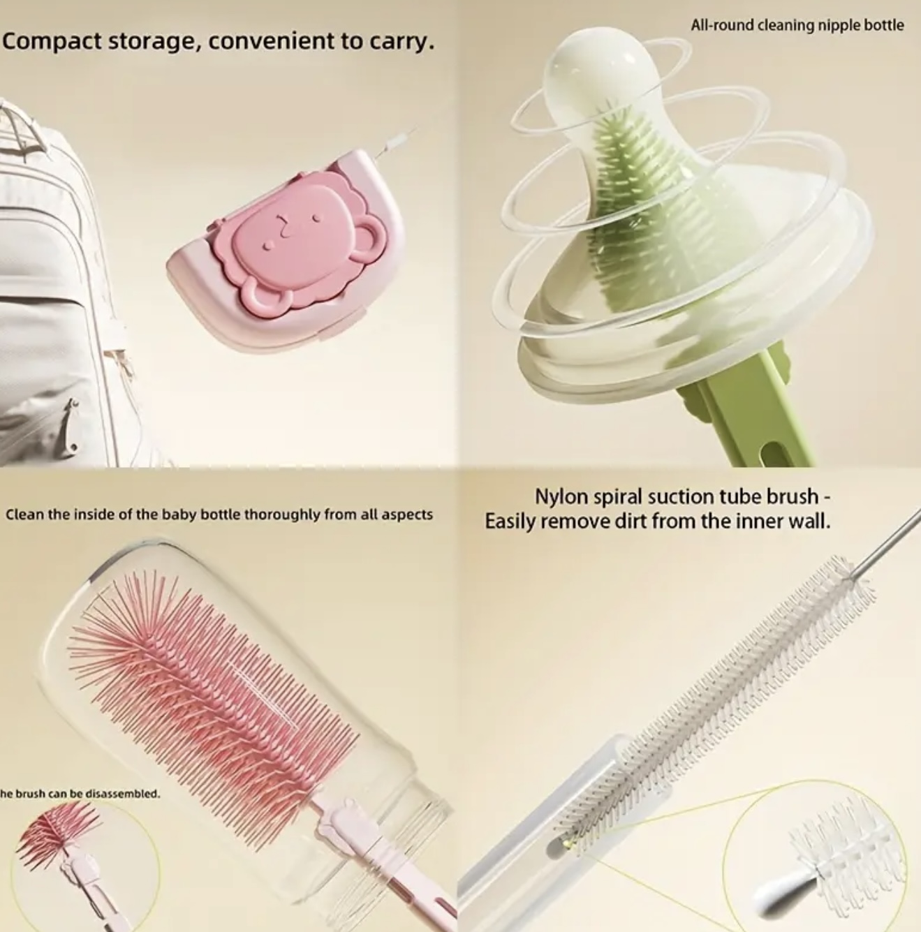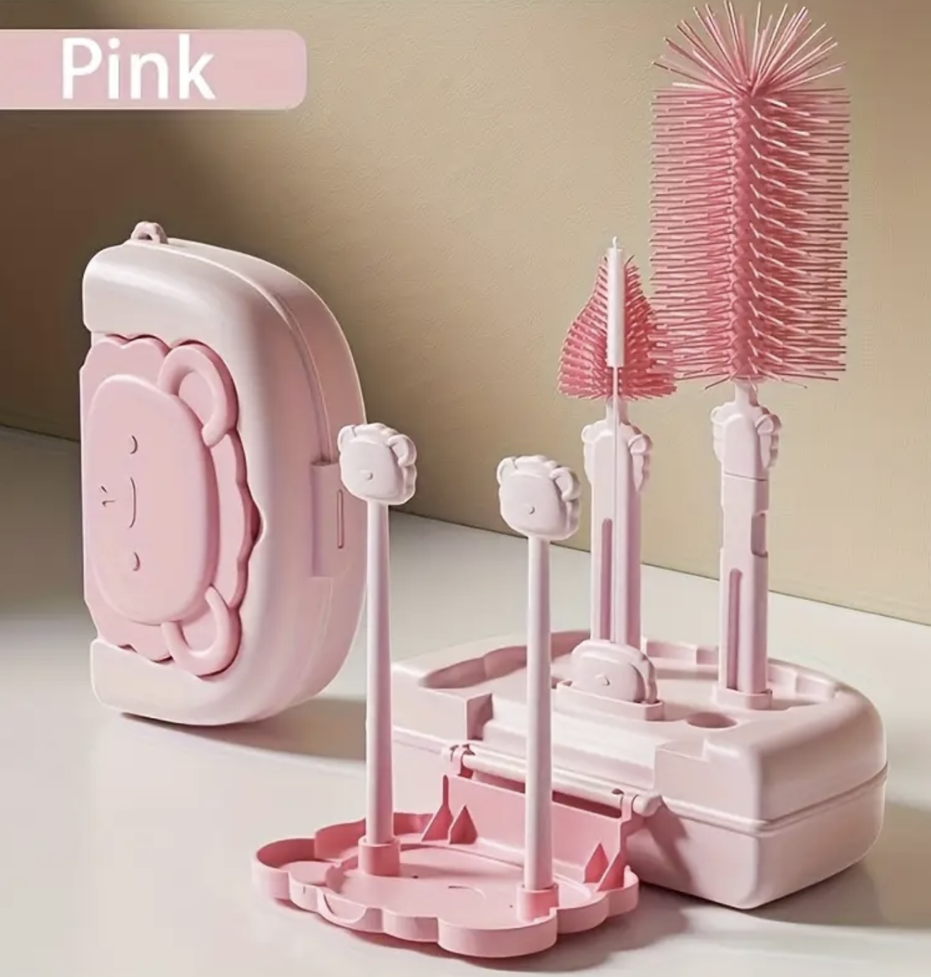 ست تمیزکننده و شستشوی شیشه شیر شامل: برس شیشه شیر، برس سرشیشه، برس نی، قفسههای آبچکان و خشککن، ست قابلحمل و آسان برای استفاده