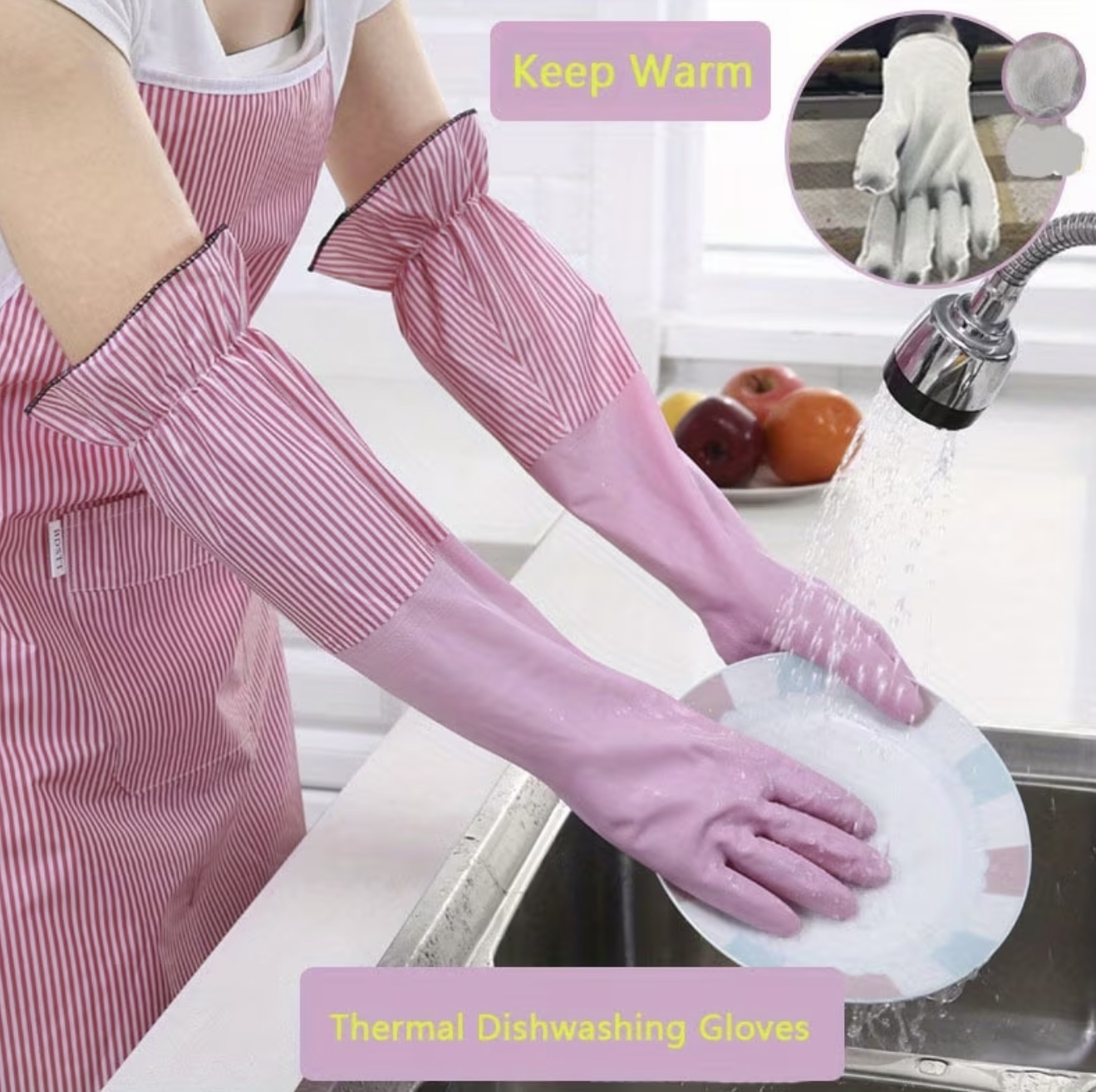 ست دستکش /دارای روکش نرم برای تمیزکاری منزل، ضدآب برای شستوشوی ظروف، ضدلغزش برای انجام کارهای خانه و بادوام برای شستوشوی لباس