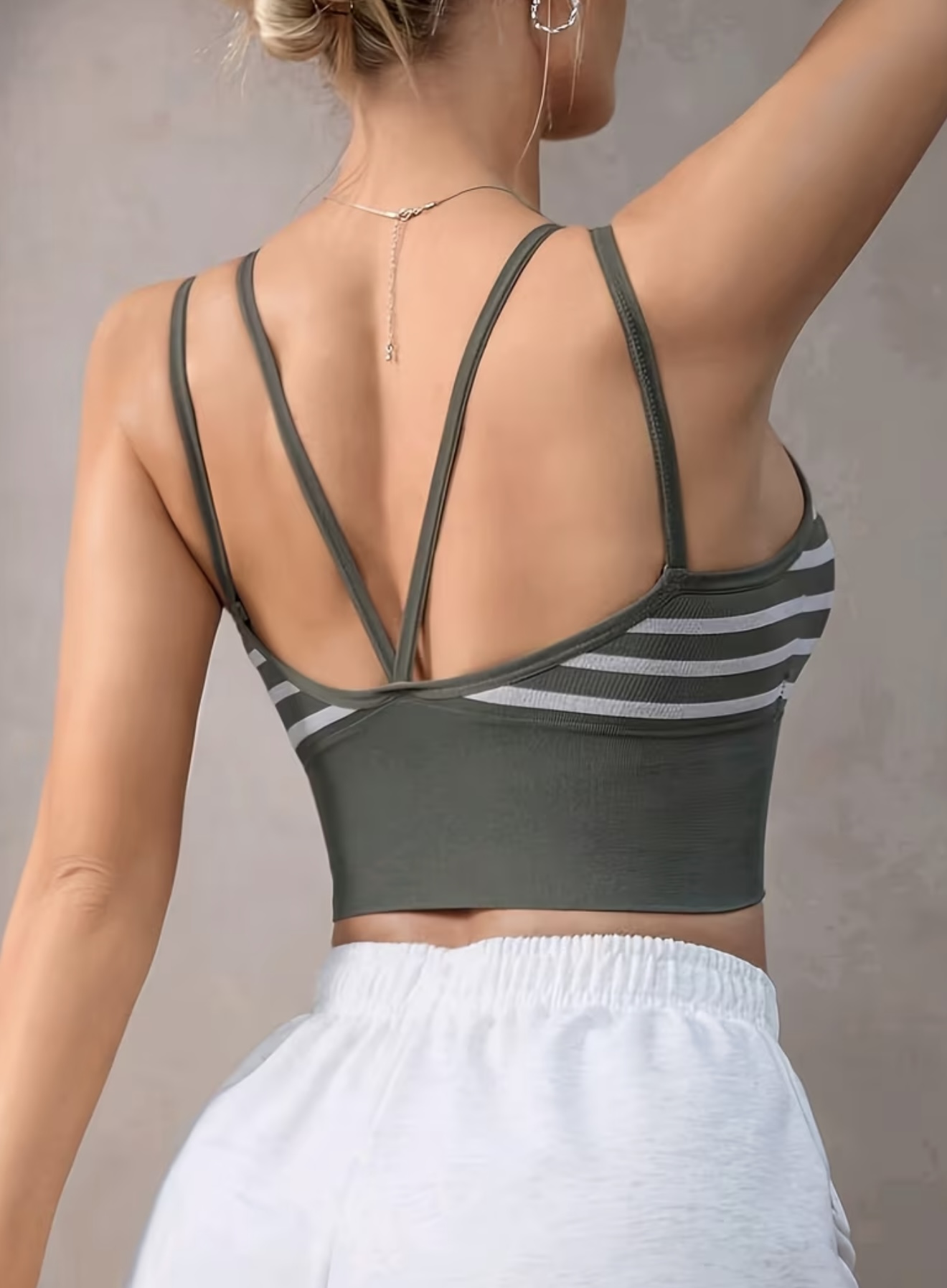ست دو عددی تاپ با کشش بالا و طرح راه‌راه، بند پشت ضربدری