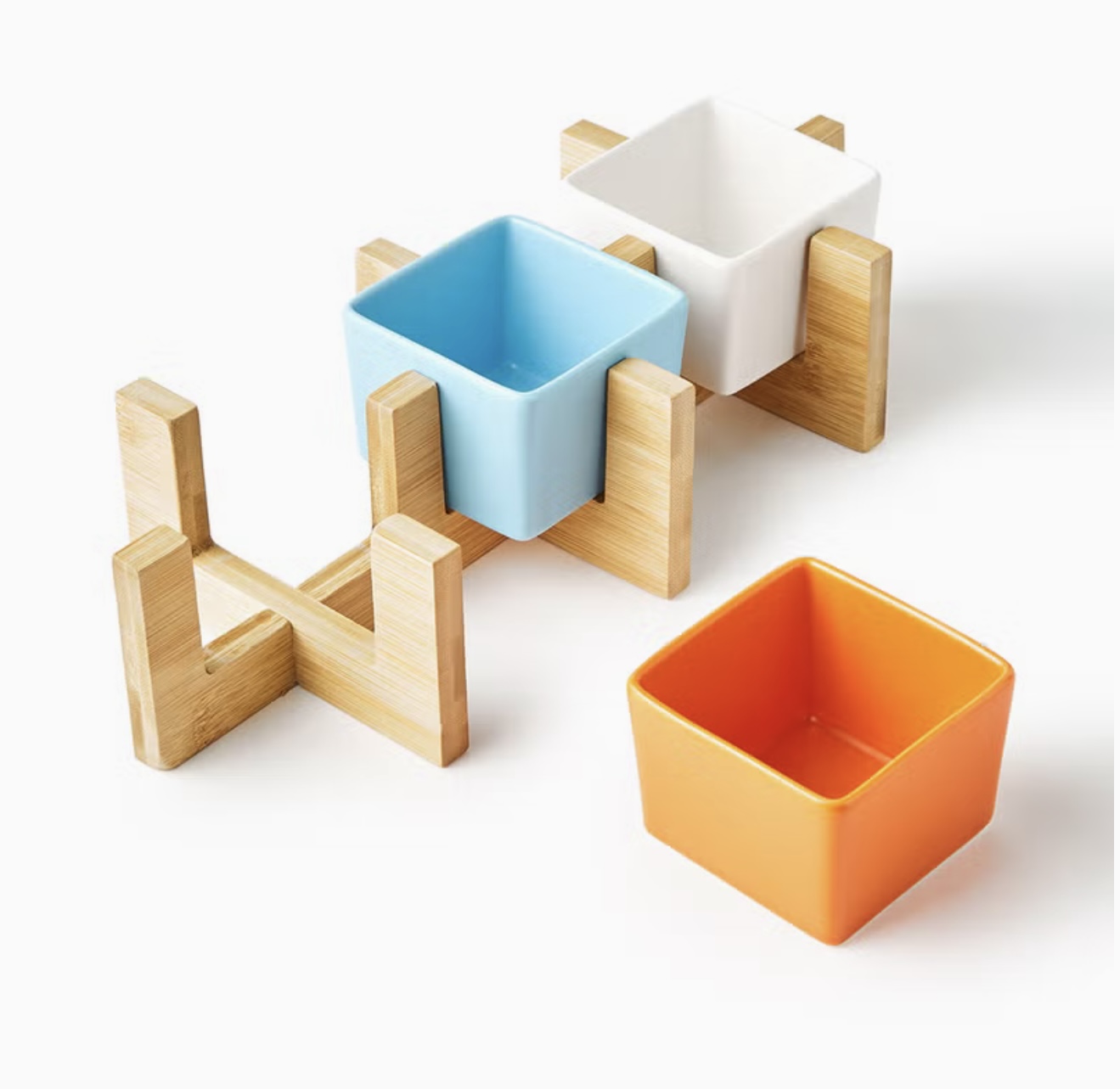 ست سرو ساخته شده از بامبو و سرامیک رنگی شامل بشقاب سرو، ظروف پذیرایی، سینی، کاسهها و استند