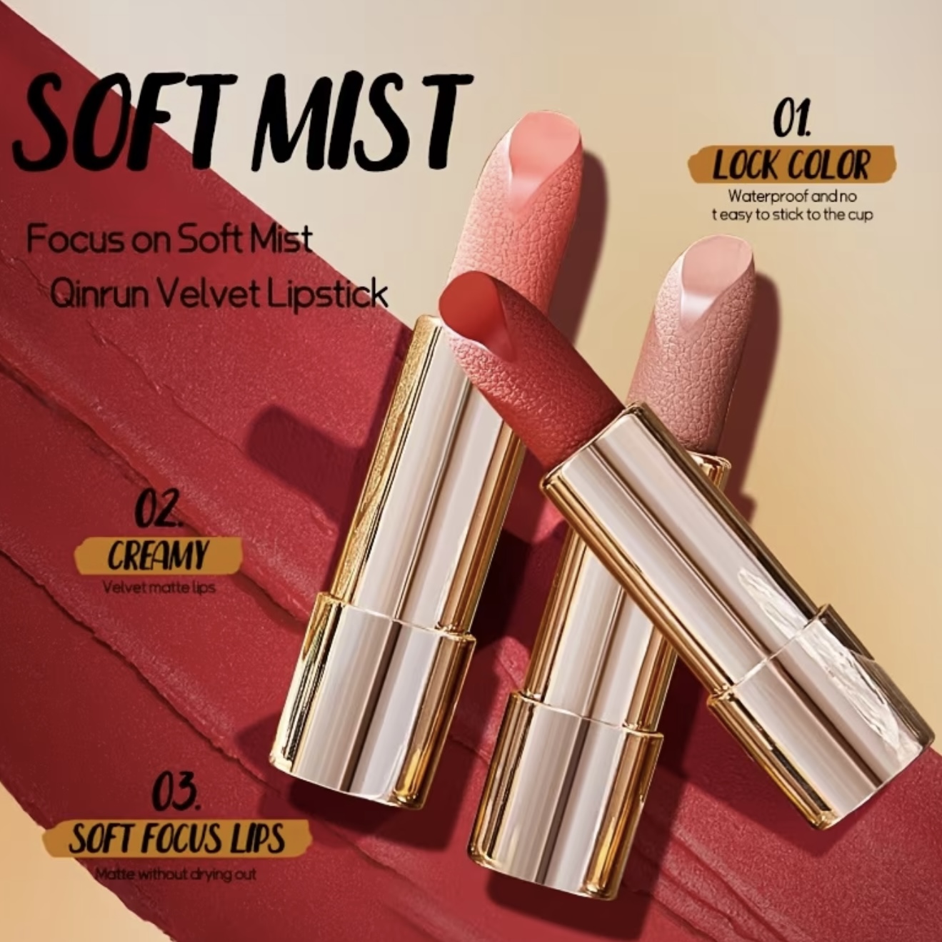 - رژ لب مات با سایههای قرمز کشویی، توت/قرمز