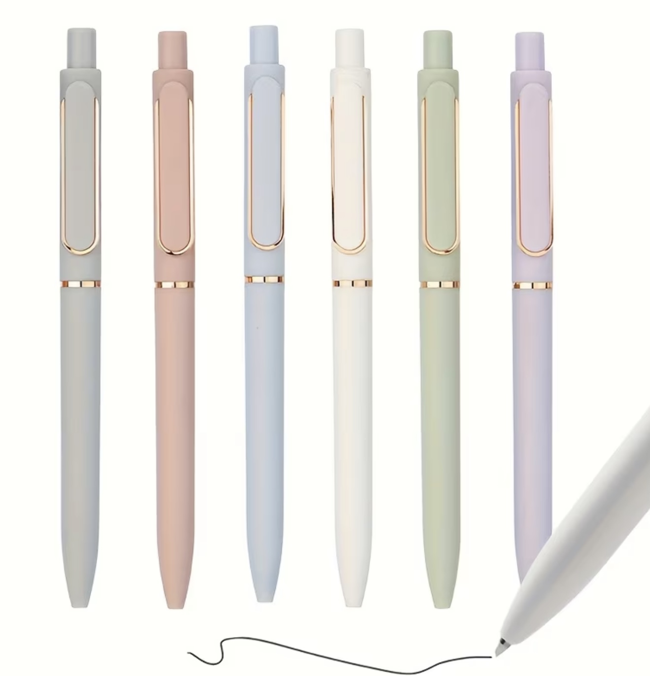 ست شش عددی خودکار ژلهای با رنگهای ملایم و مکانیزم کلیکی (Click-Type Soft-Color Gel Pen)، نوک ۰.۵ میلیمتر، با جوهر سیاه