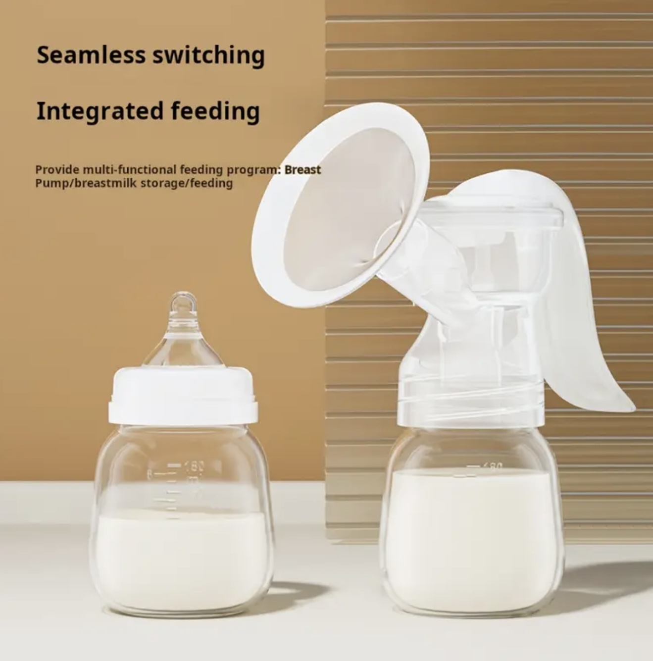 ست شیردوش دستی با سیستم پمپ پیستونی – شامل شیشه شیر ۱۸۰ میلیلیتری و سرشیشه، ساخته شده از پلاستیک بادوام، مناسب گروه سنی ۱۴+ ماه، برای شیردهی و نگهداری شیر مادر