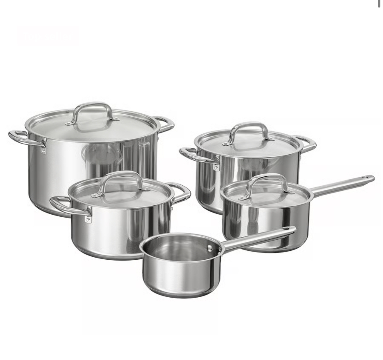 ست ظروف پخت و پز ۹ پارچه از استیل ضدزنگ