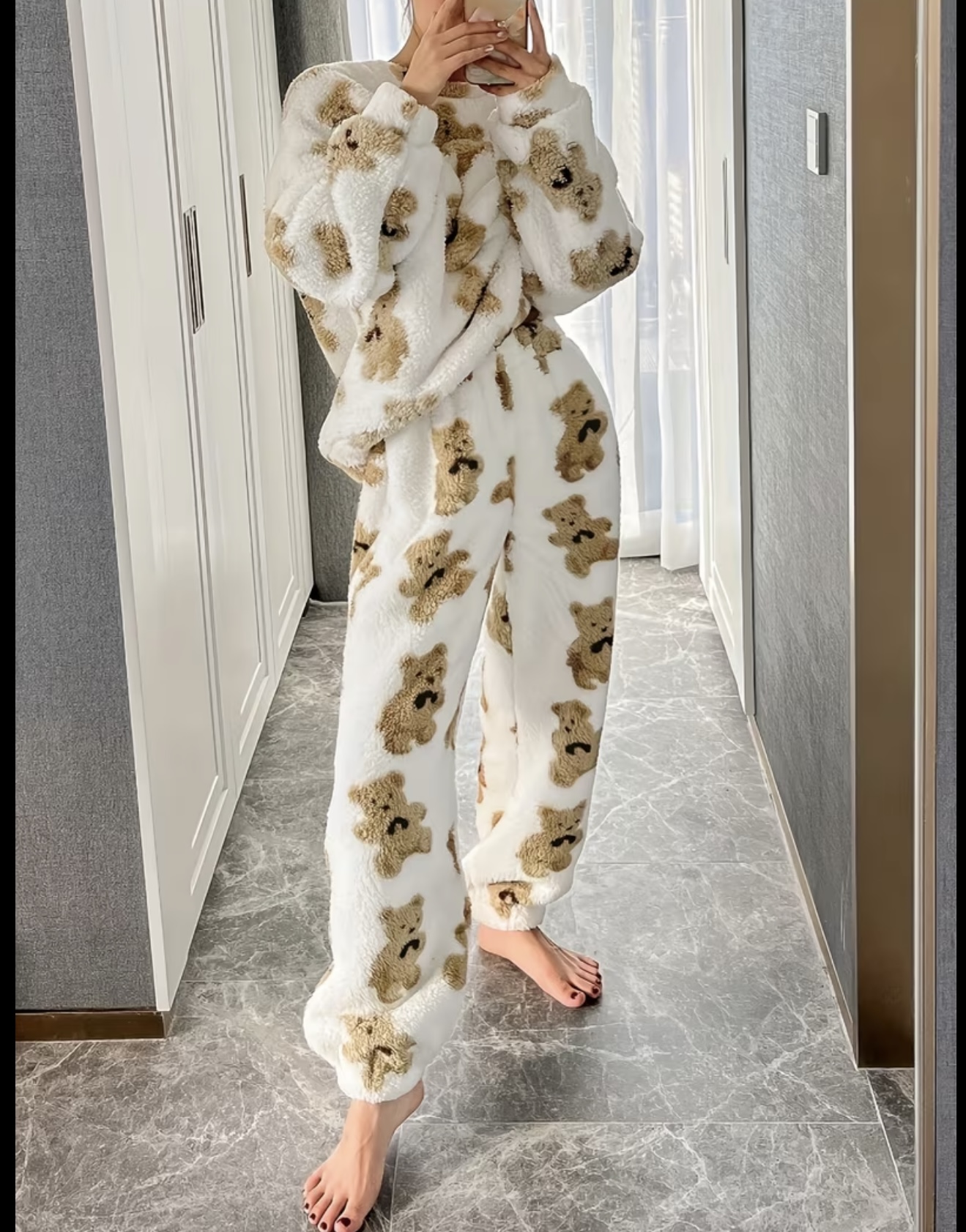 ست لباس راحتی مخملی با طرح خرس کوچک