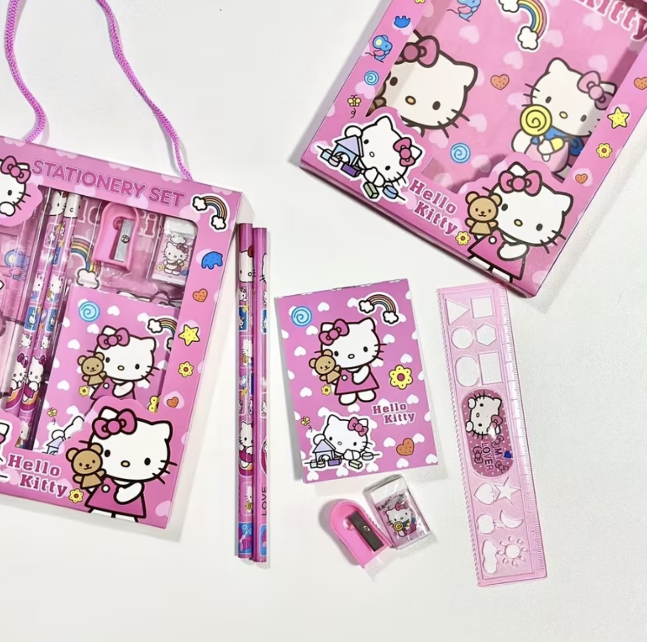 ست لوازمتحریر ۶ تکه با تم هلو کیتی شامل خطکش، مداد، دفترچه و موارد دیگر