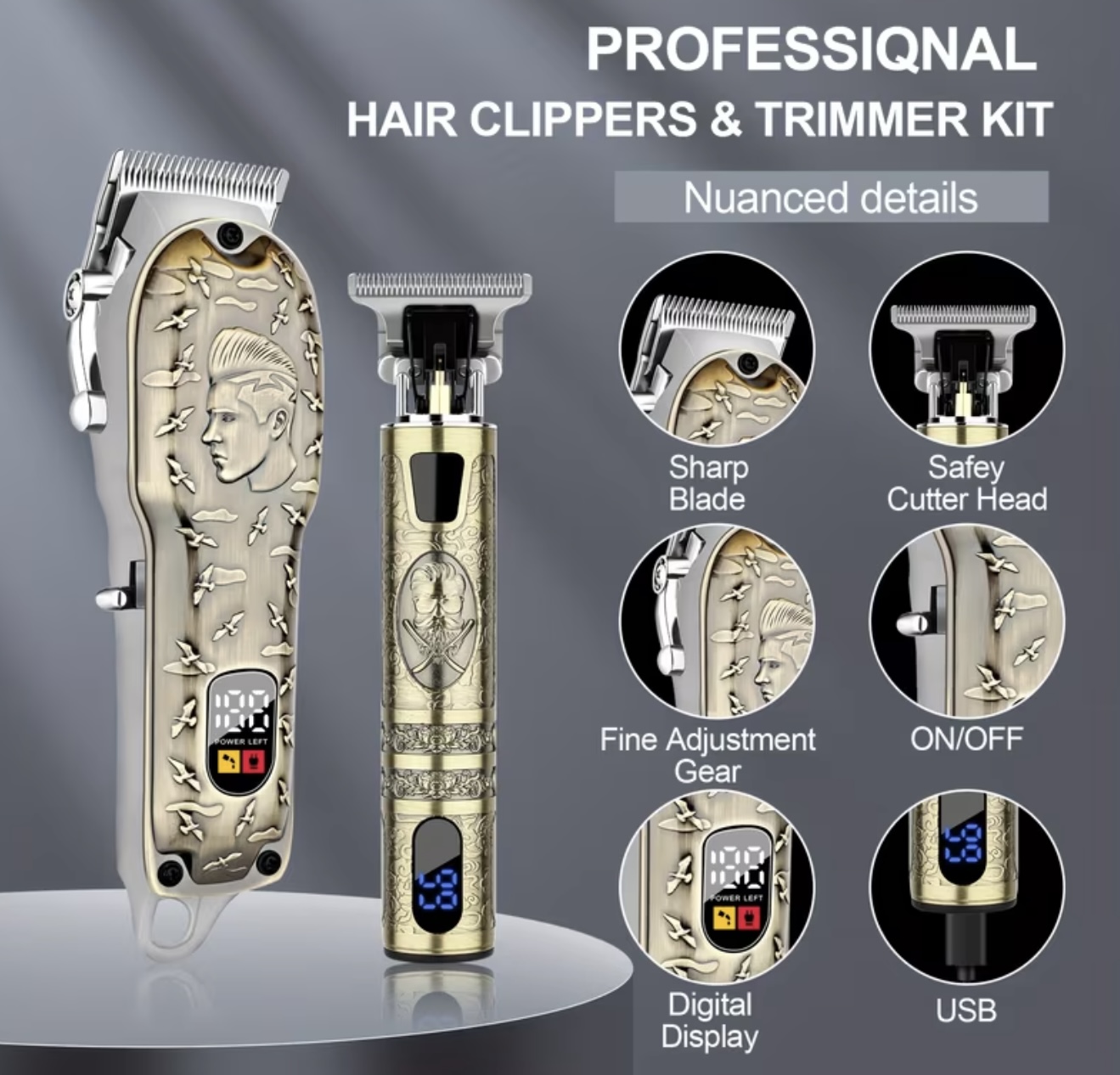ست ماشین اصلاح و ریشتراش بیسیم LQT برای آقایان: ماشین اصلاح حرفهای مردانه با موتور پرقدرت، کمصدا، با دوام طولانی و شارژ USB