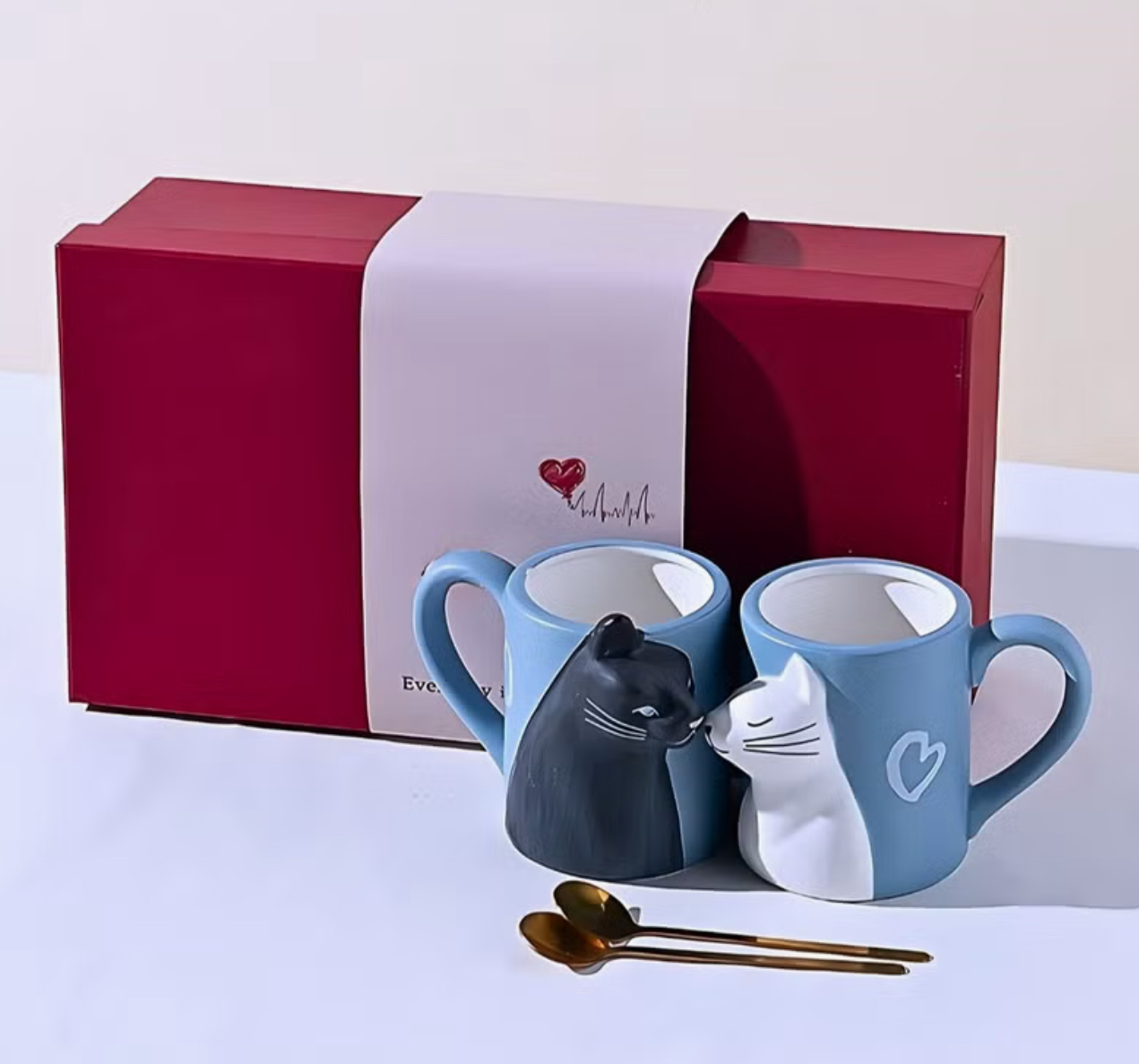 ست ماگهای سرامیکی گربه با ۲ عدد قاشق طلایی