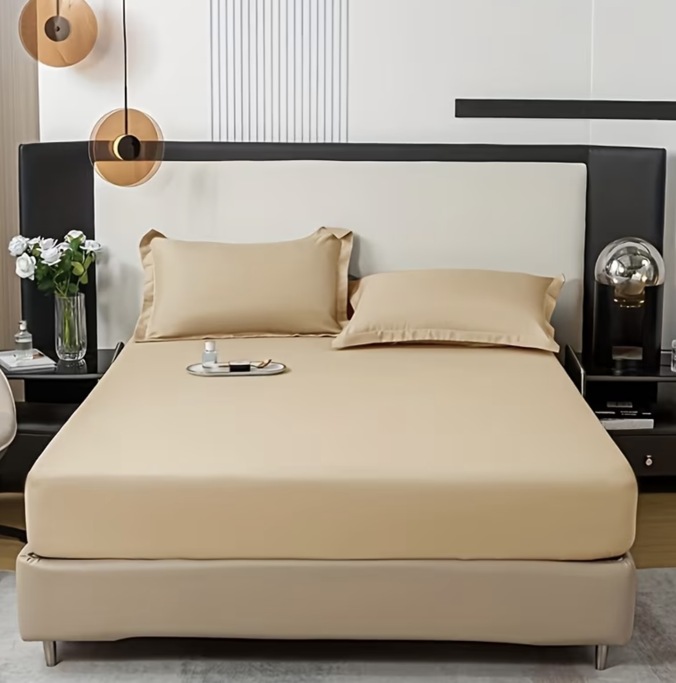 ست ملحفه کش‌دوز ۳ تکه،شامل ۱ عدد ملحفه کش‌دار و ۲ عدد روبالشی، از پارچه نرم و لطیف، قابل شست‌وشو با ماشین لباسشویی، با پوشش ۳۶۰ درجه و فیت کامل روی تشک