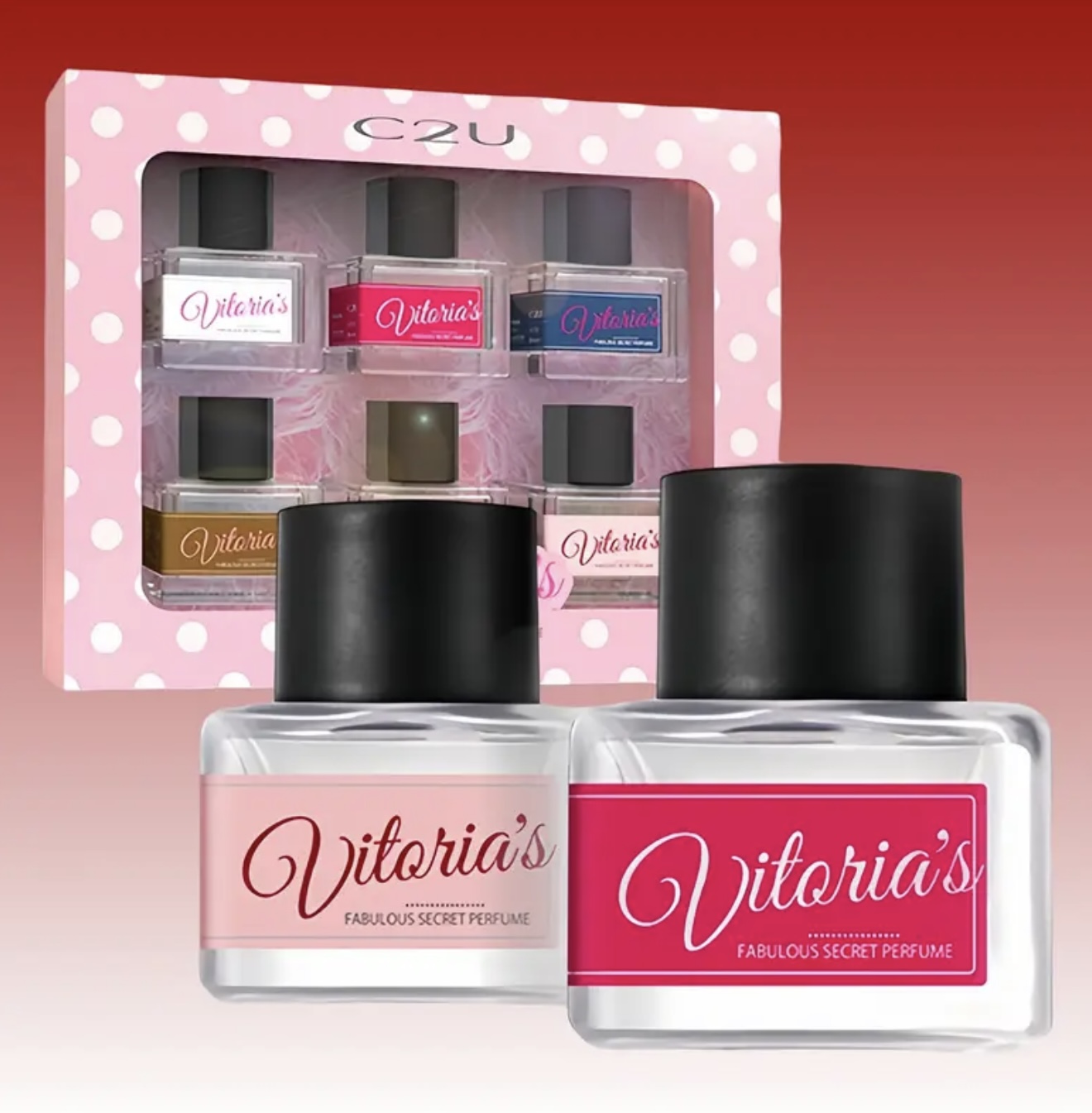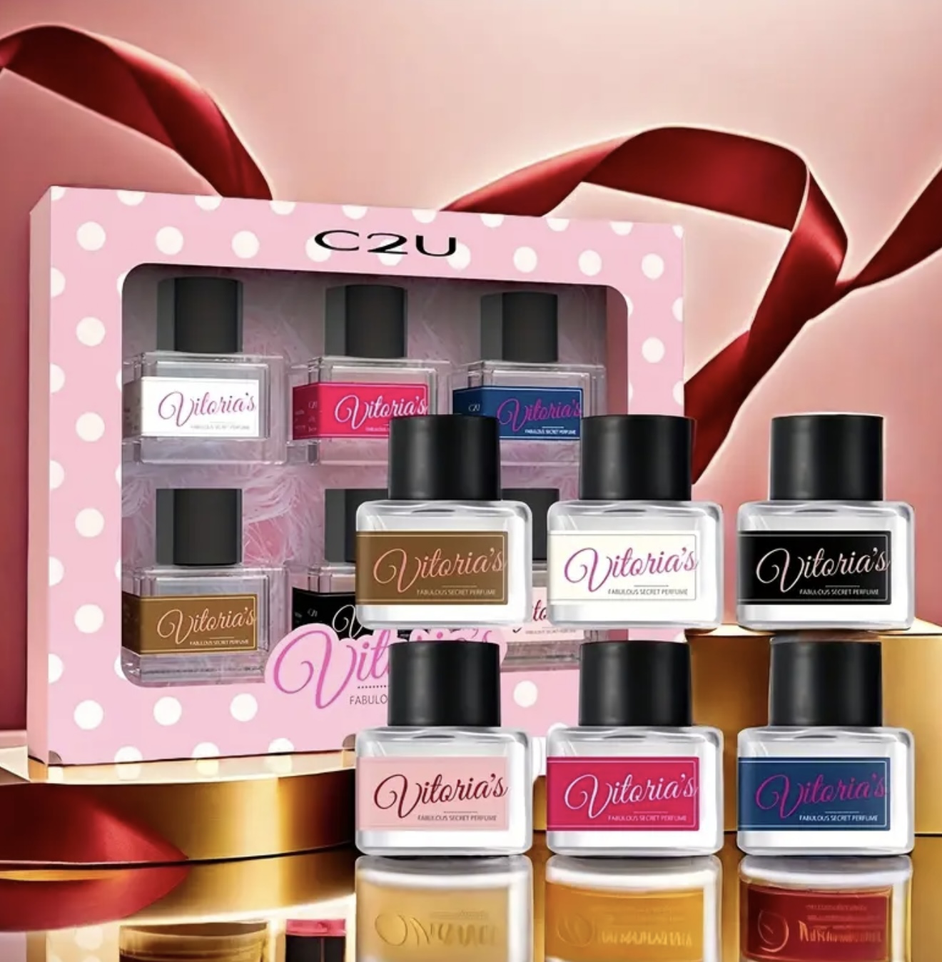 ست هدیه ۶ عددی عطر لوکس C2U – شامل ۶ رایحه ماندگار (دربهای صورتی/مشکی) با نتهای رز، وانیل، میوهای و چوبی – عطر روغنی پایه الکلی، مناسب هدیه کریسمس و تعطیلات، همراه با جعبه هدیه شیک