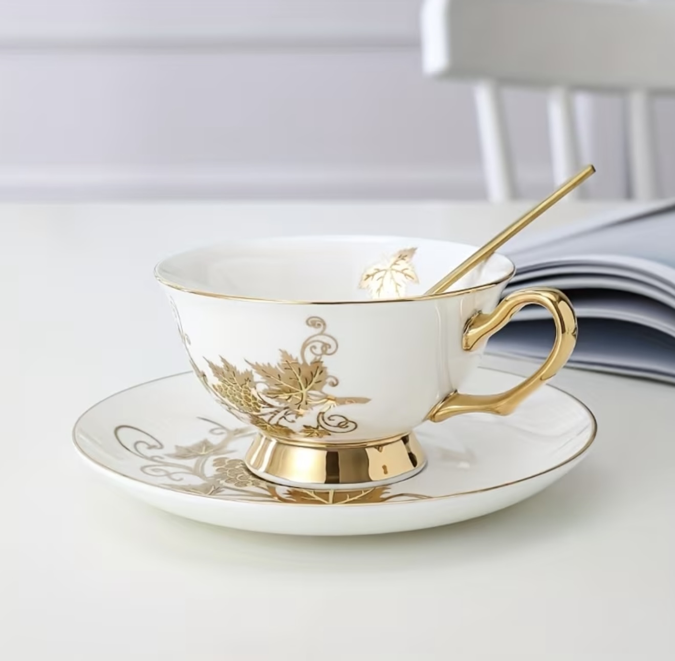 ست چای طلایی ۳ تکه شامل: فنجان، نعلبکی، قاشق
