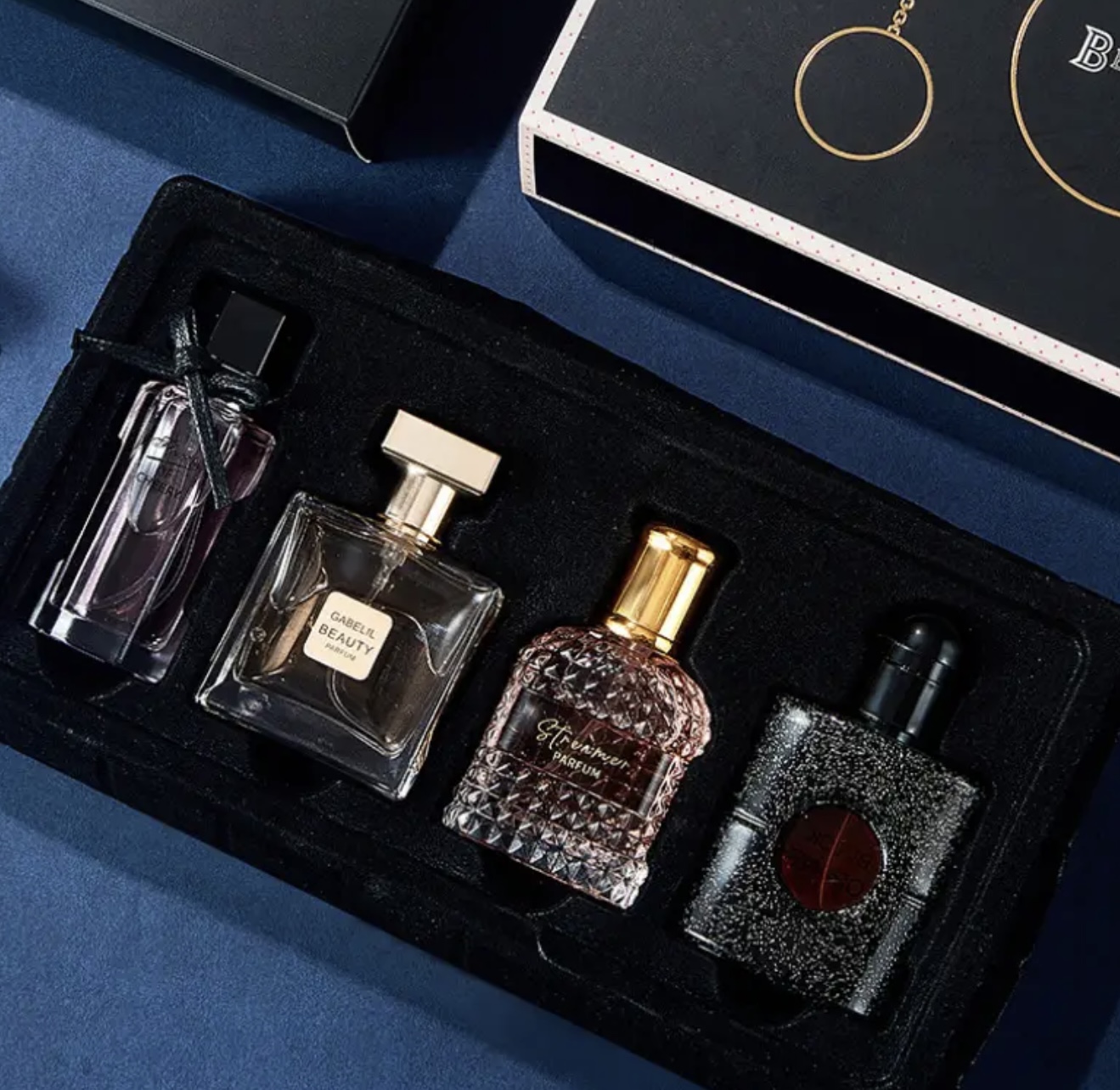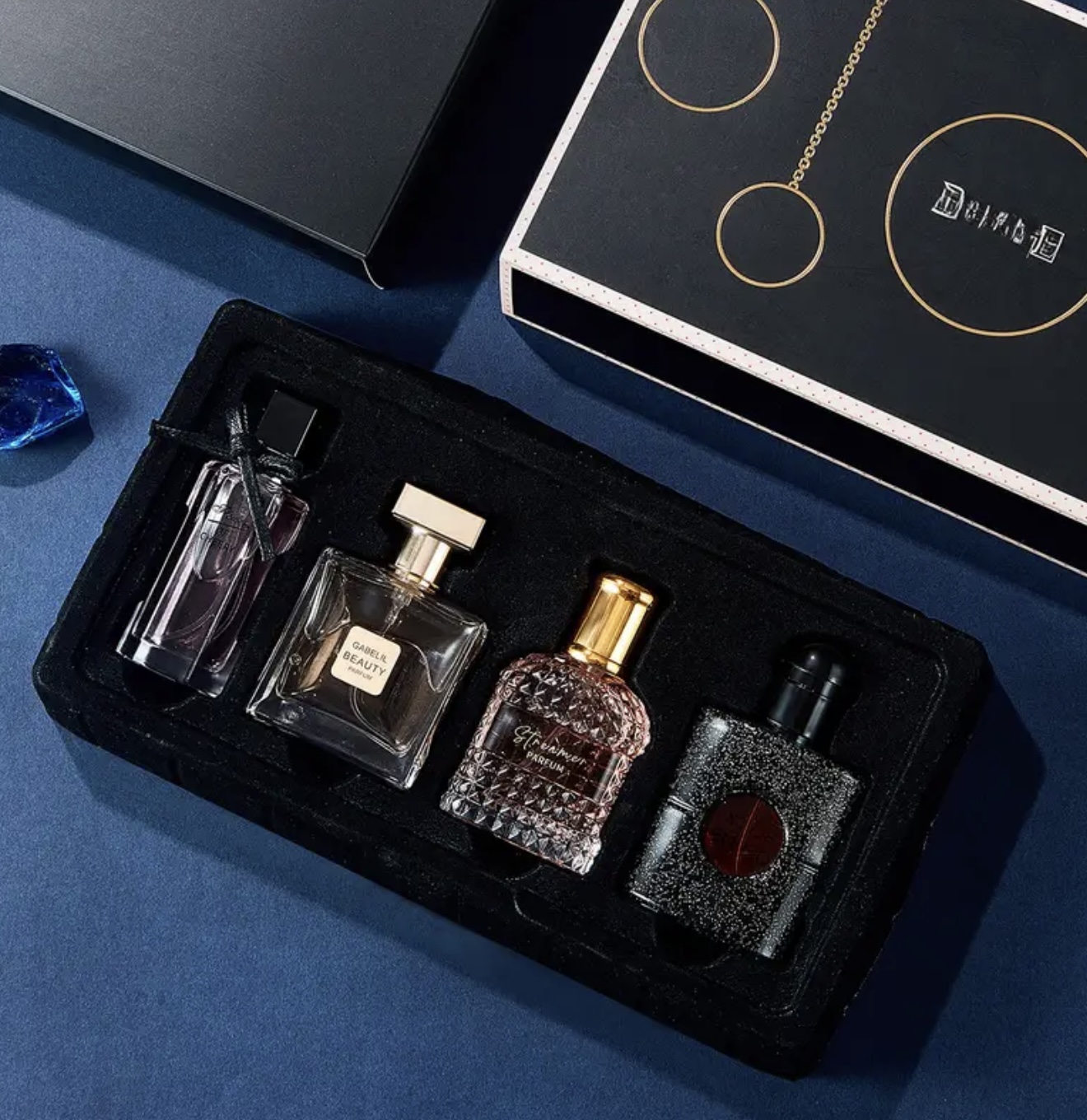 ست چهار عددی عطر زنانه در جعبه هدیه زیبا – مناسب فروش عمده، با رایحه‌ای ماندگار