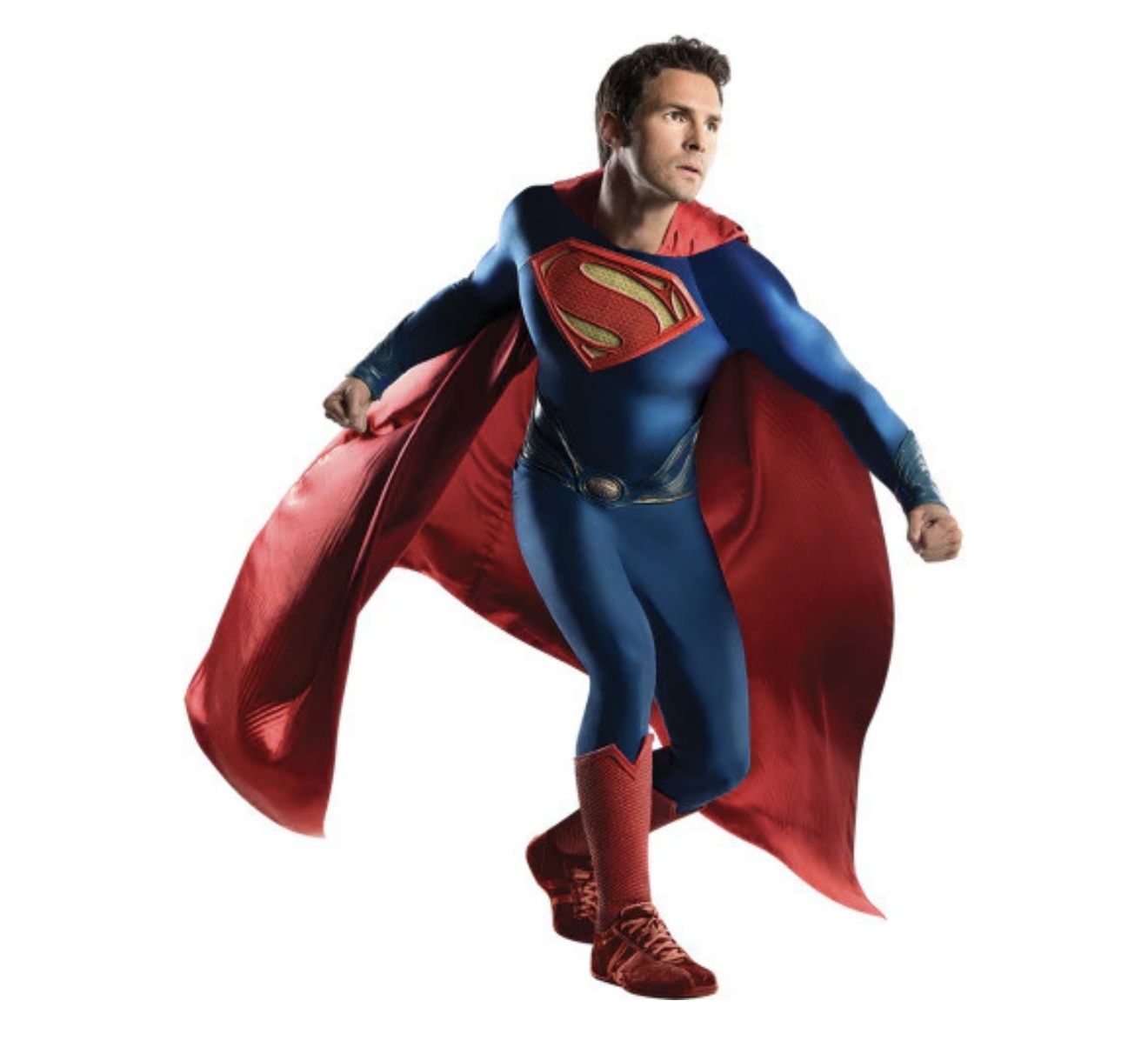 ست کامل لباس سوپرمن گرند هریتیج شامل رومپر، شنل، نماد سینه، کمربند و رویه کفش‌ها