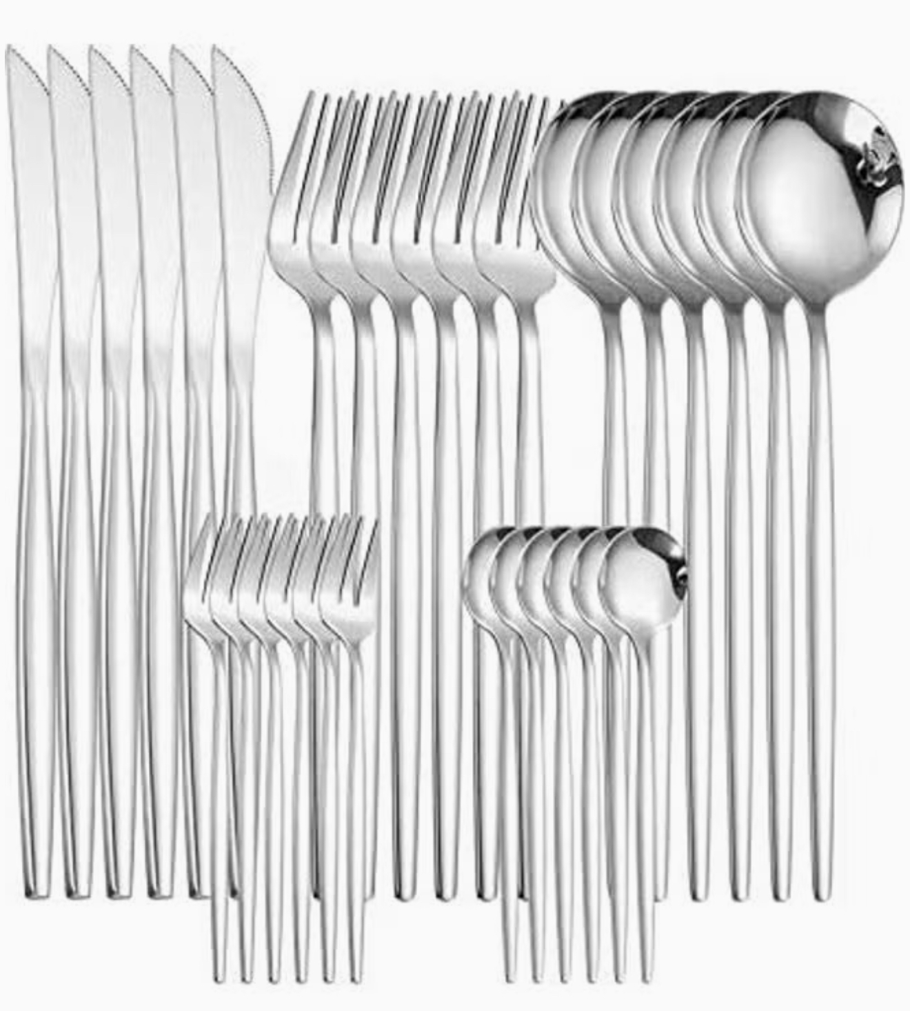 ست کامل ۳۰ پارچه قاشق، چنگال و چاقوی استیل نقره‌ای